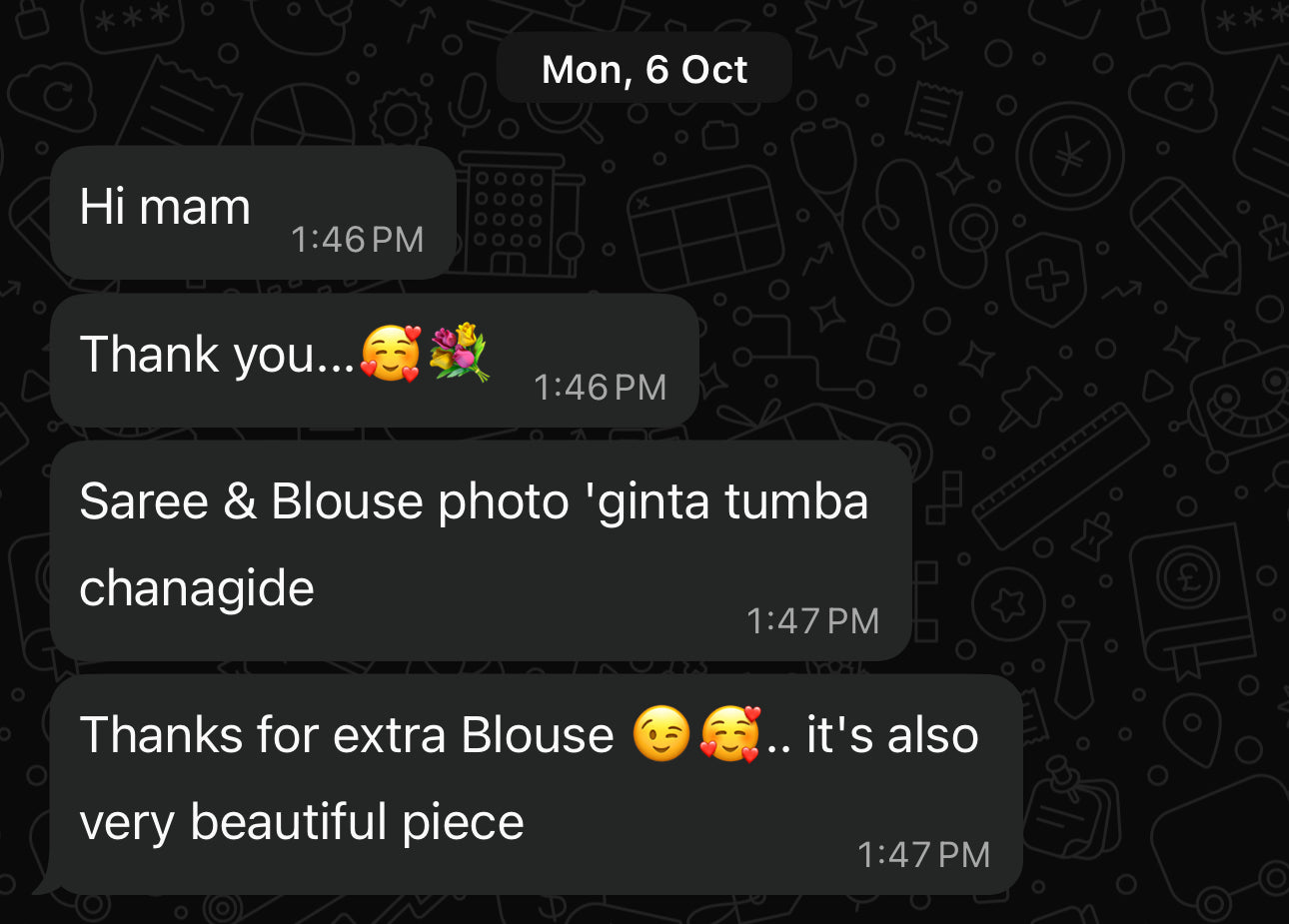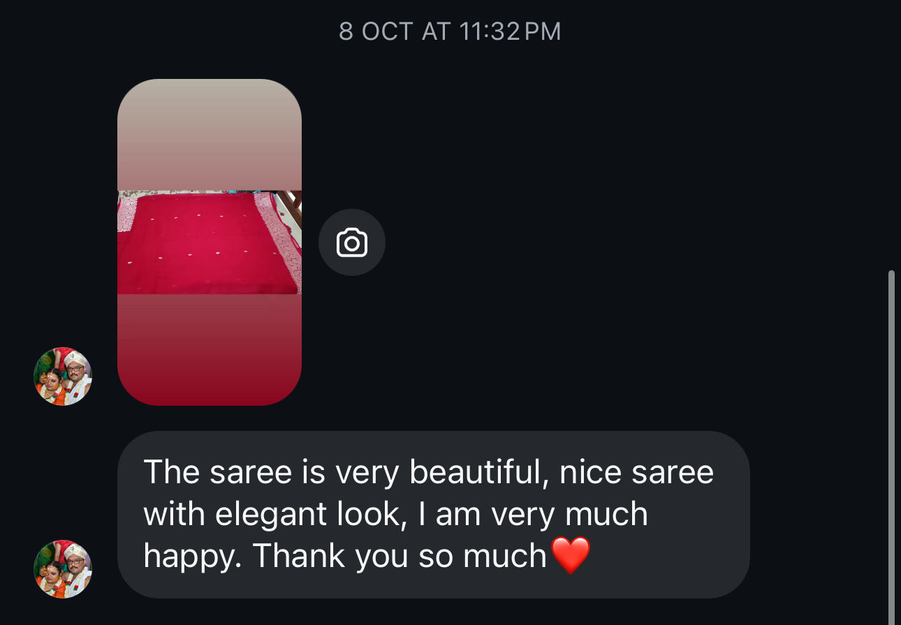 “The products were even more beautiful than the pictures, and her mother loved a few sarees so much that she placed a repeat order.❤️”