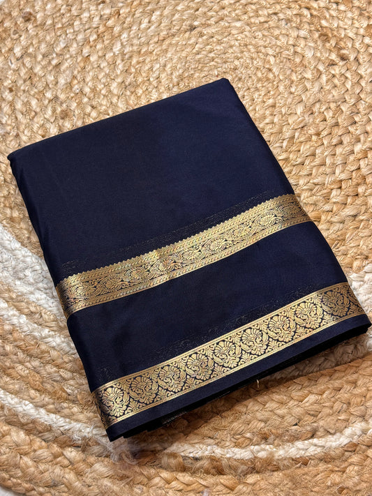 Semi Mysore Crepe Silk (Blue Self colour - Bentex Border)