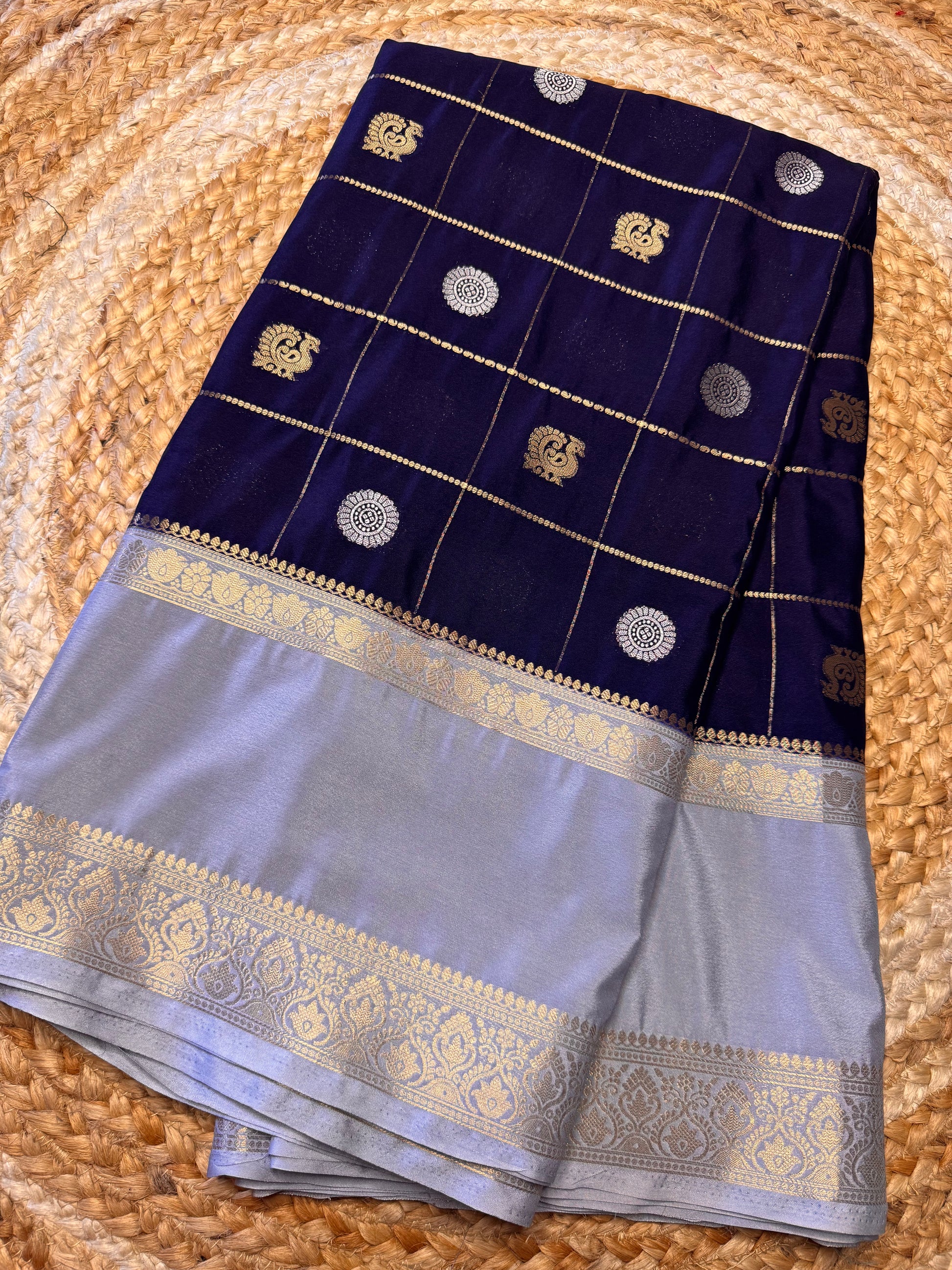 Navy Blue Semi Mysore Silk (Gold and Silver Zari)