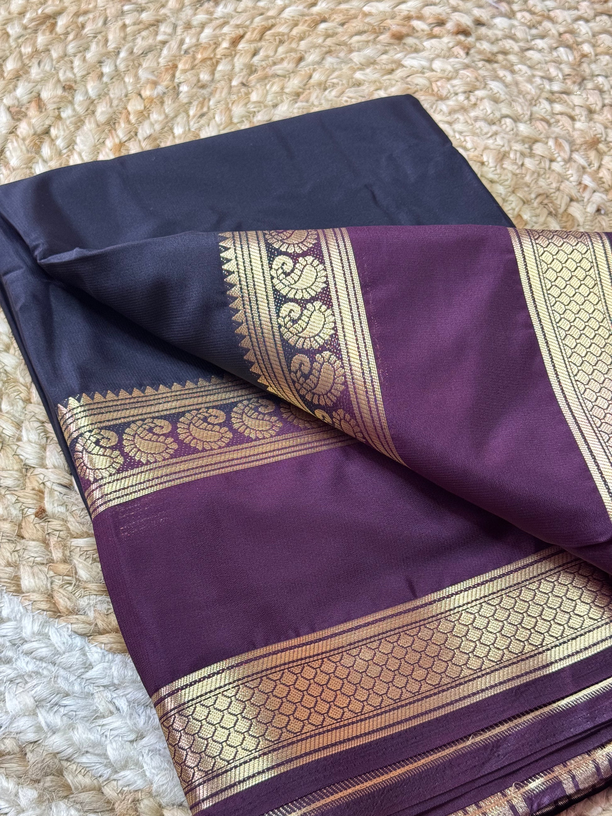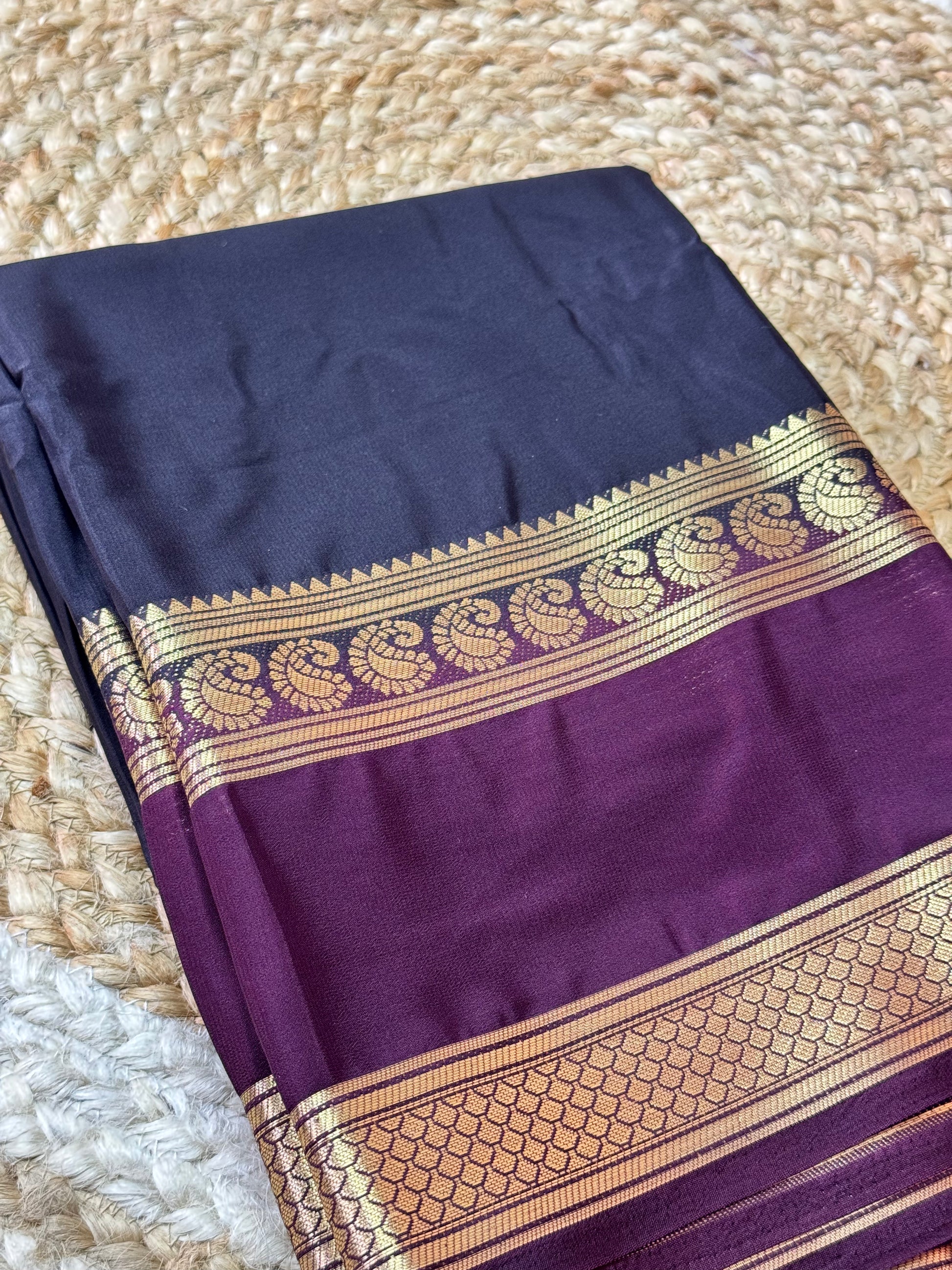 Black and Purple Semi Soft Silk Bentex Border Saree