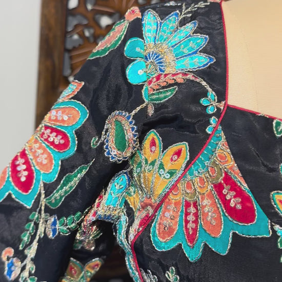 Black kalamkari Crepe Blouse Piece/Material
