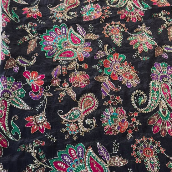 Black with Red/green Colour kalamkari Crepe Blouse Piece/Material-B02
