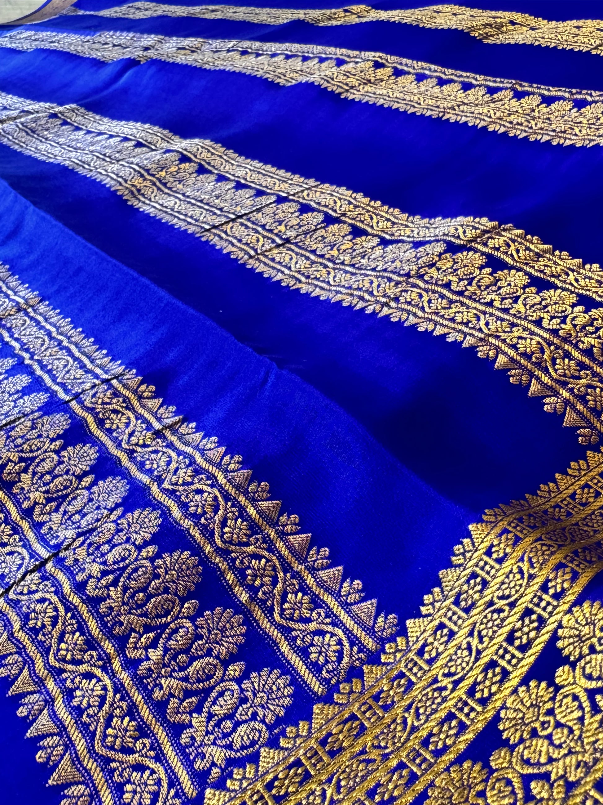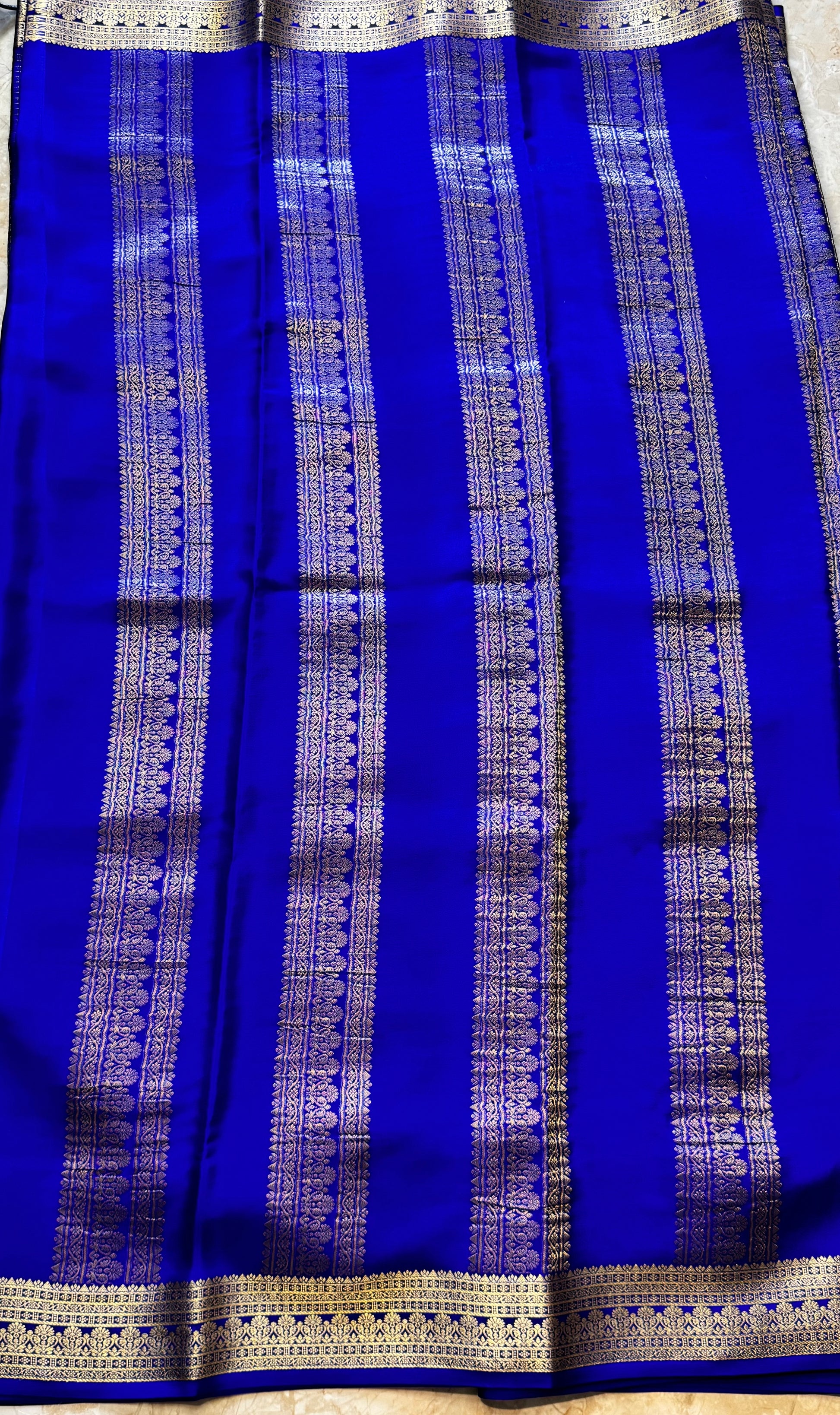 At Anchu Silks, these sarees are crafted from pure crepe fabric, featuring beautifully woven golden zari borders, paired with a rich pallu and an elegant matching blouse—designed to bring out your timeless grace.