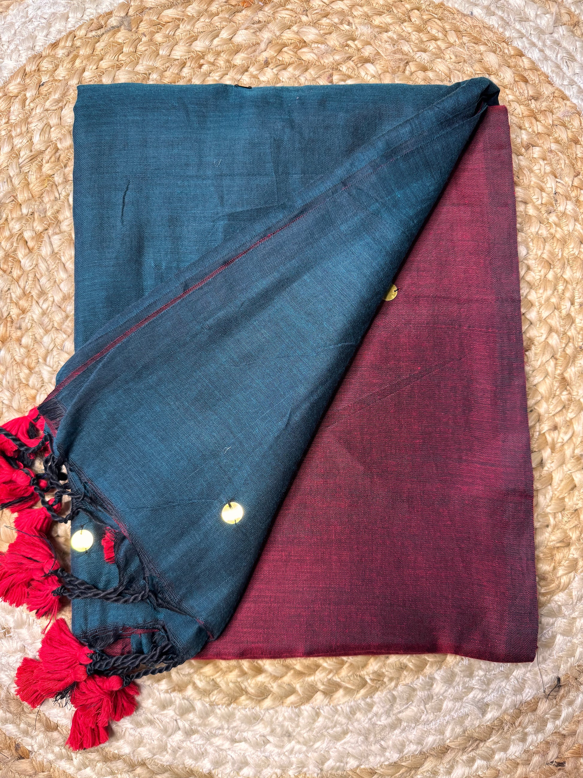 Peacock Blue with Maroon Khadi Cotton Saree