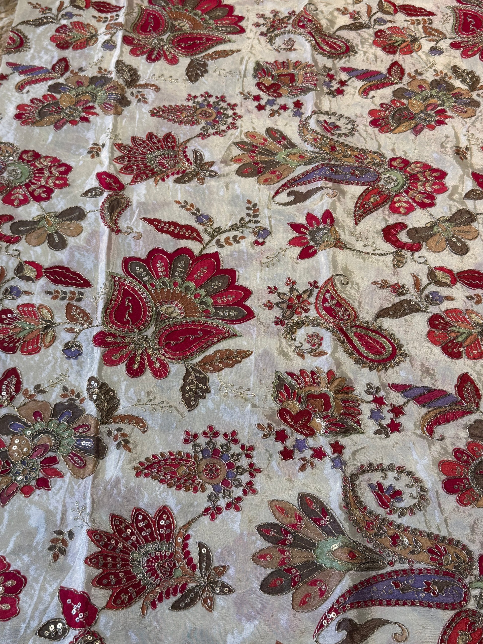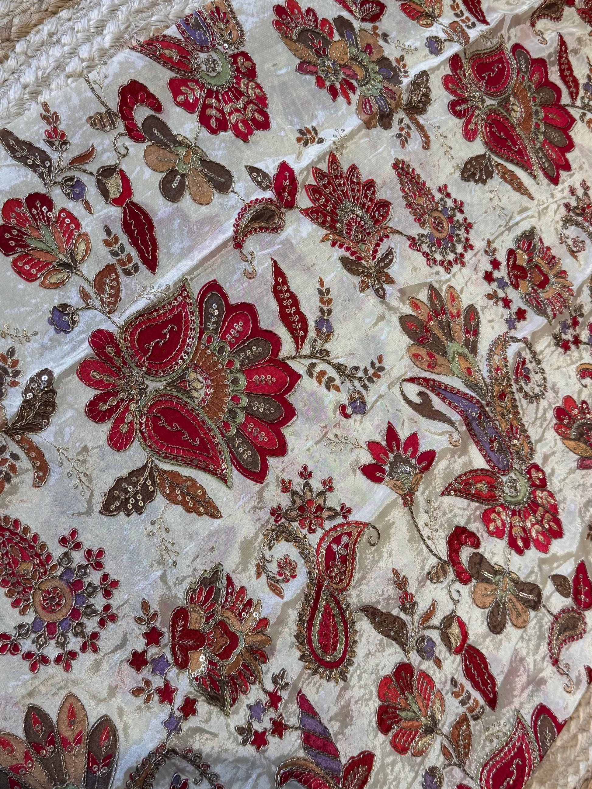 Cream with Maroon kalamkari Crepe Blouse Piece/Material