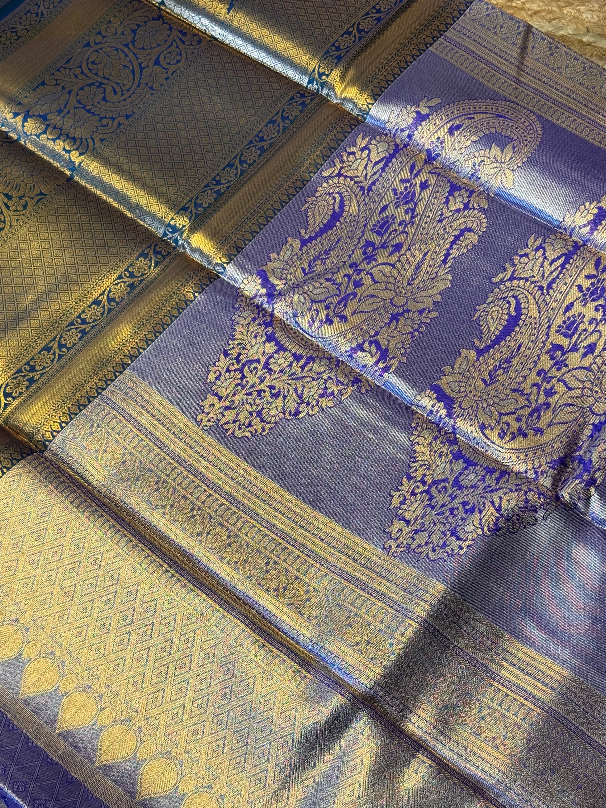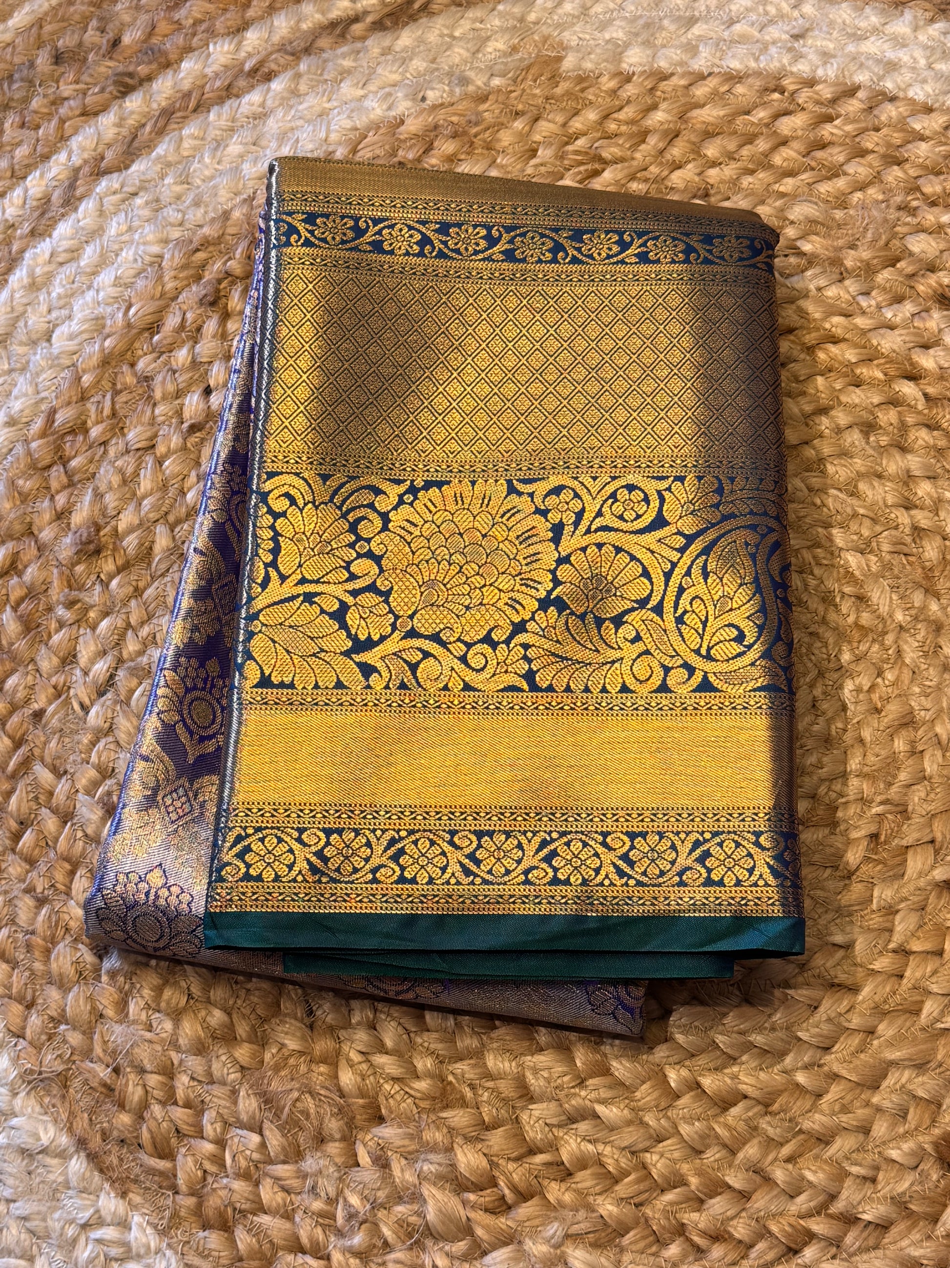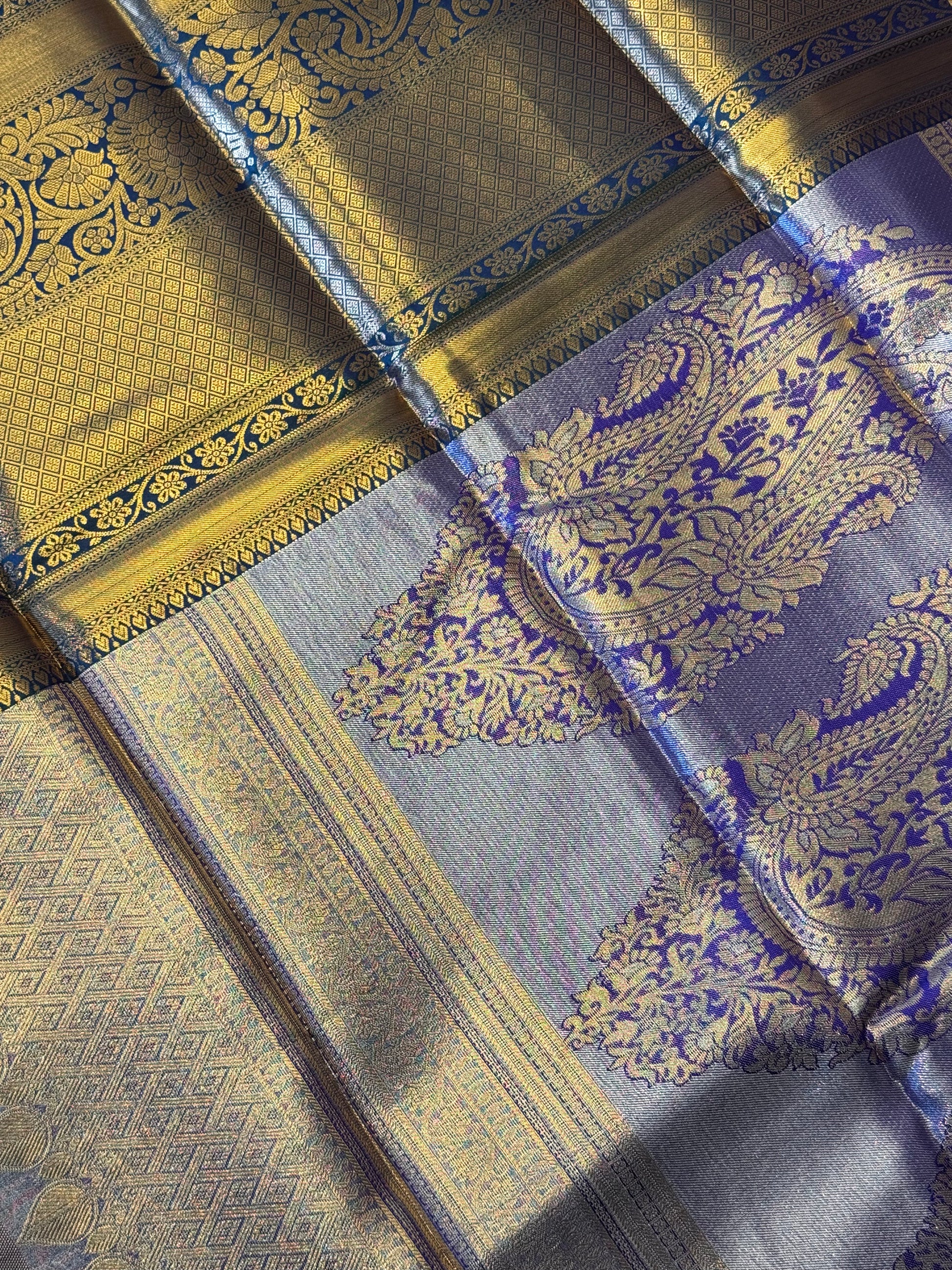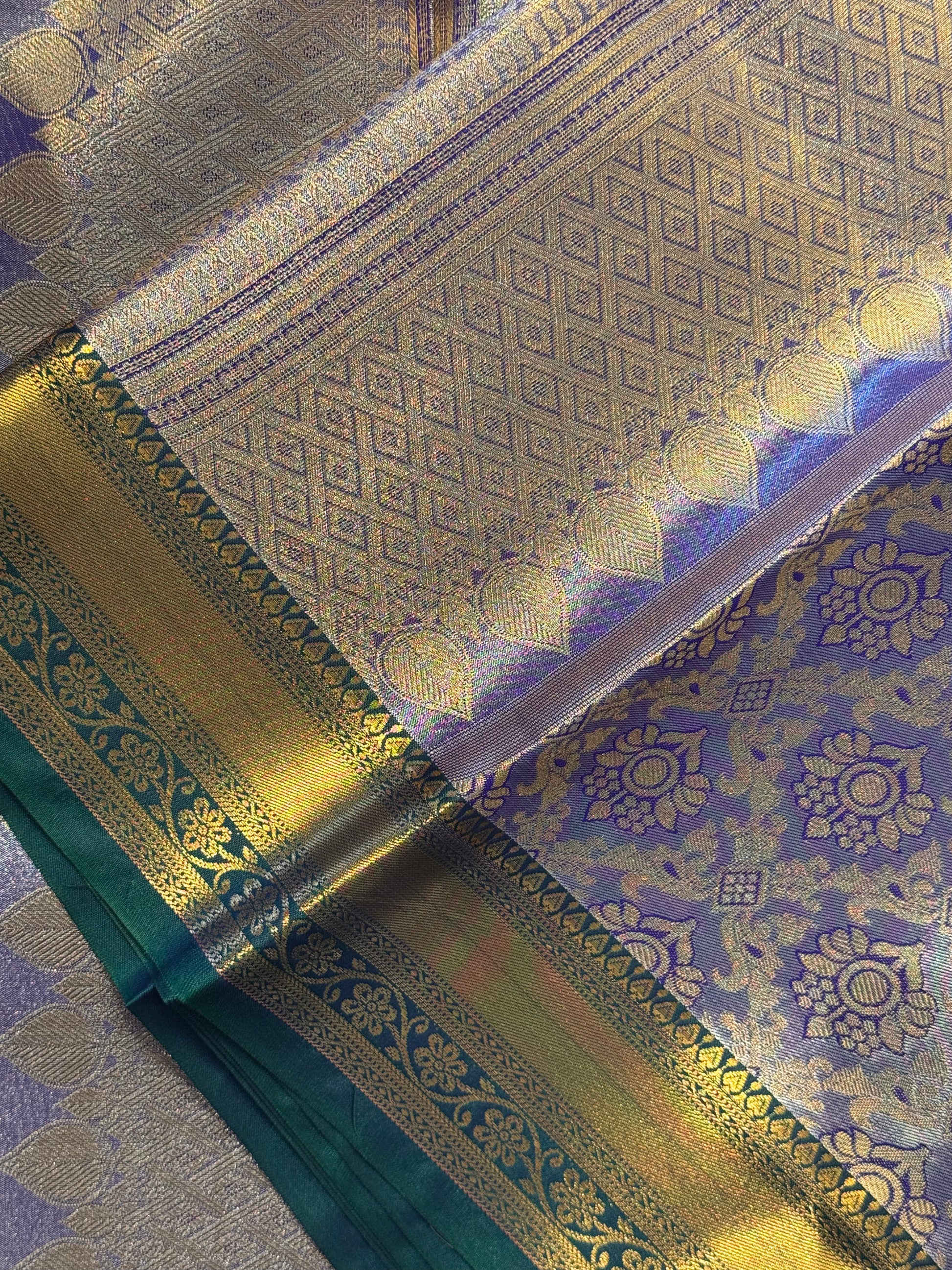 Golden Purple with Green Brocade Semi Kanchi Silk Saree