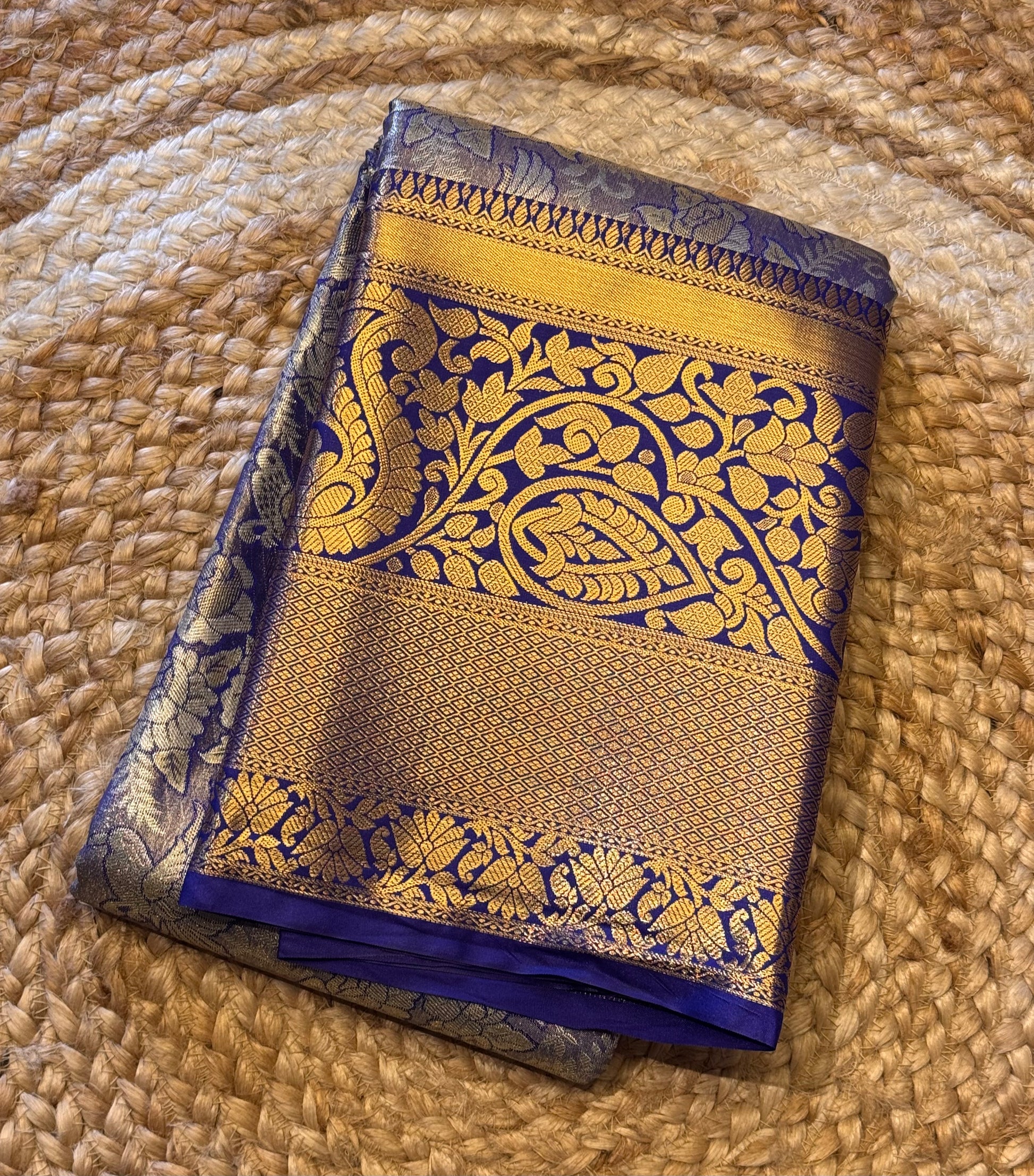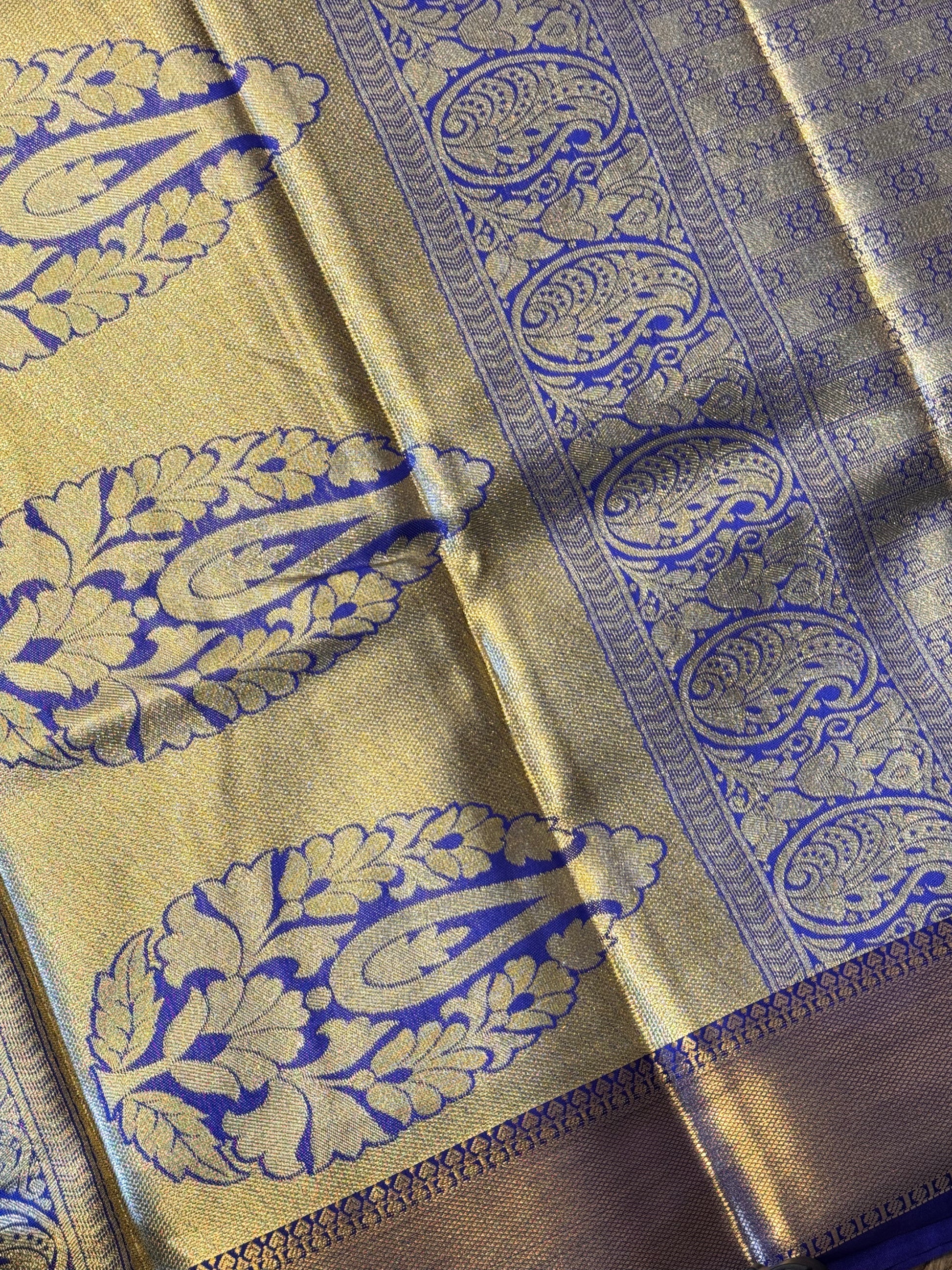 Golden Blue Brocade Semi Kanchi Silk Saree