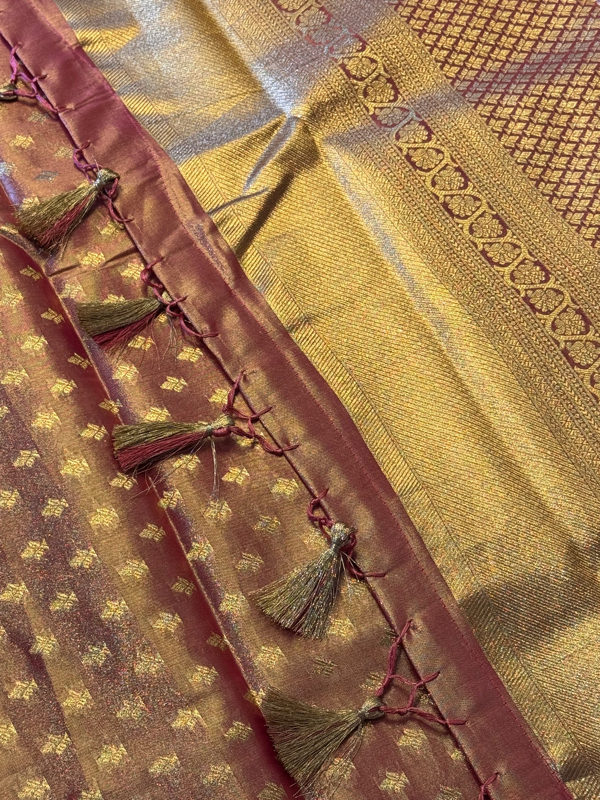 Rose Gold Semi Tissue Saree (Elephant Buttas)