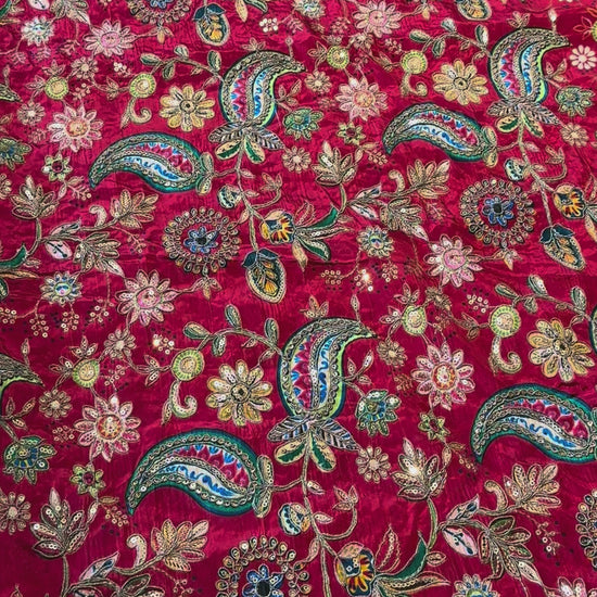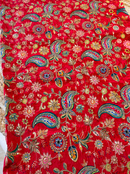 Red kalamkari Crepe Blouse Piece/Material-R02