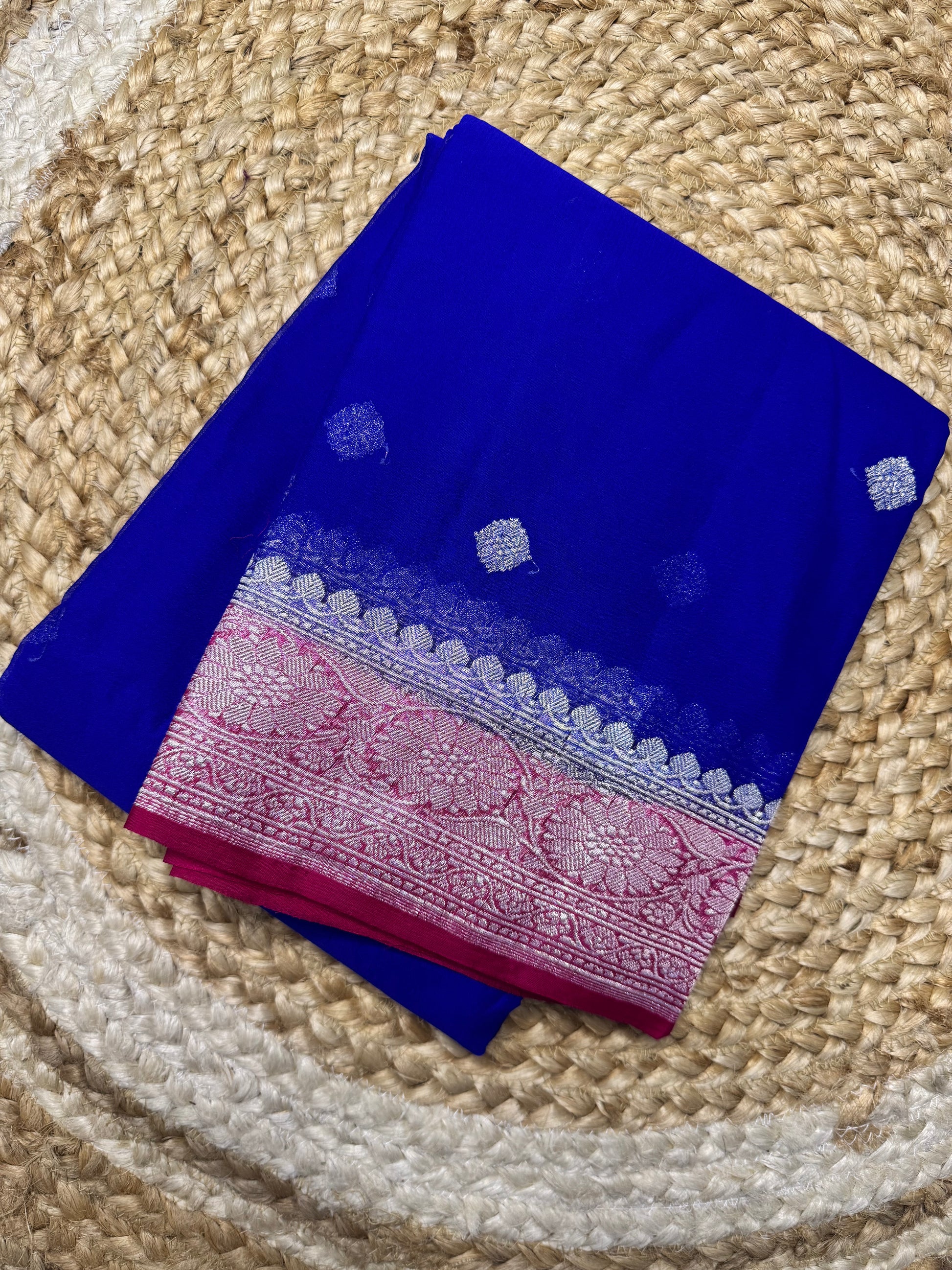 Blue with Pink Khadi Banaras Pure Chiffon Saree