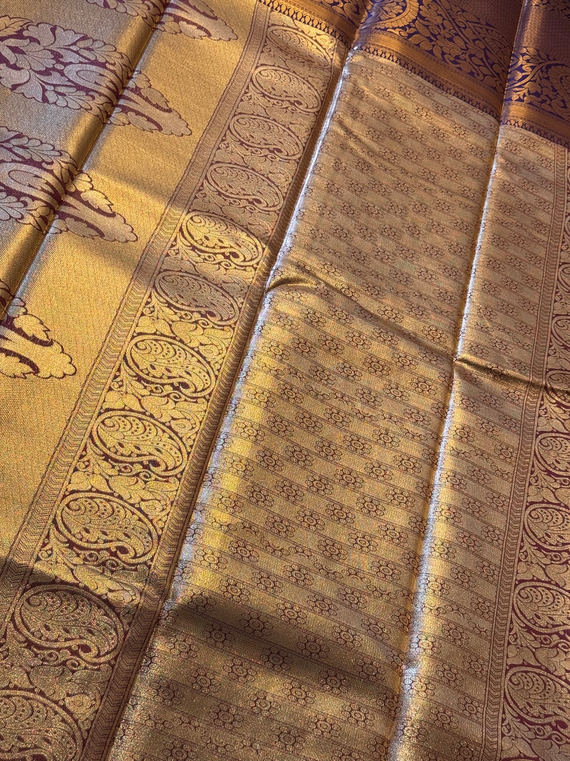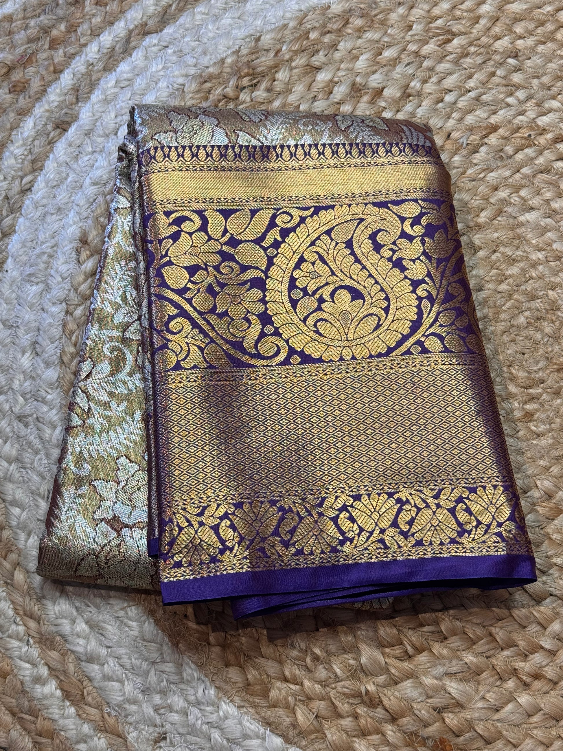 Golden Blue Brocade Semi Kanchi Silk Saree