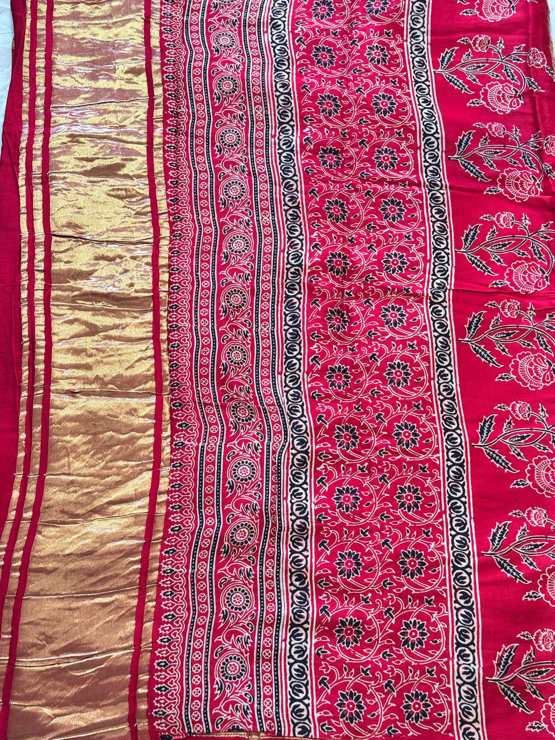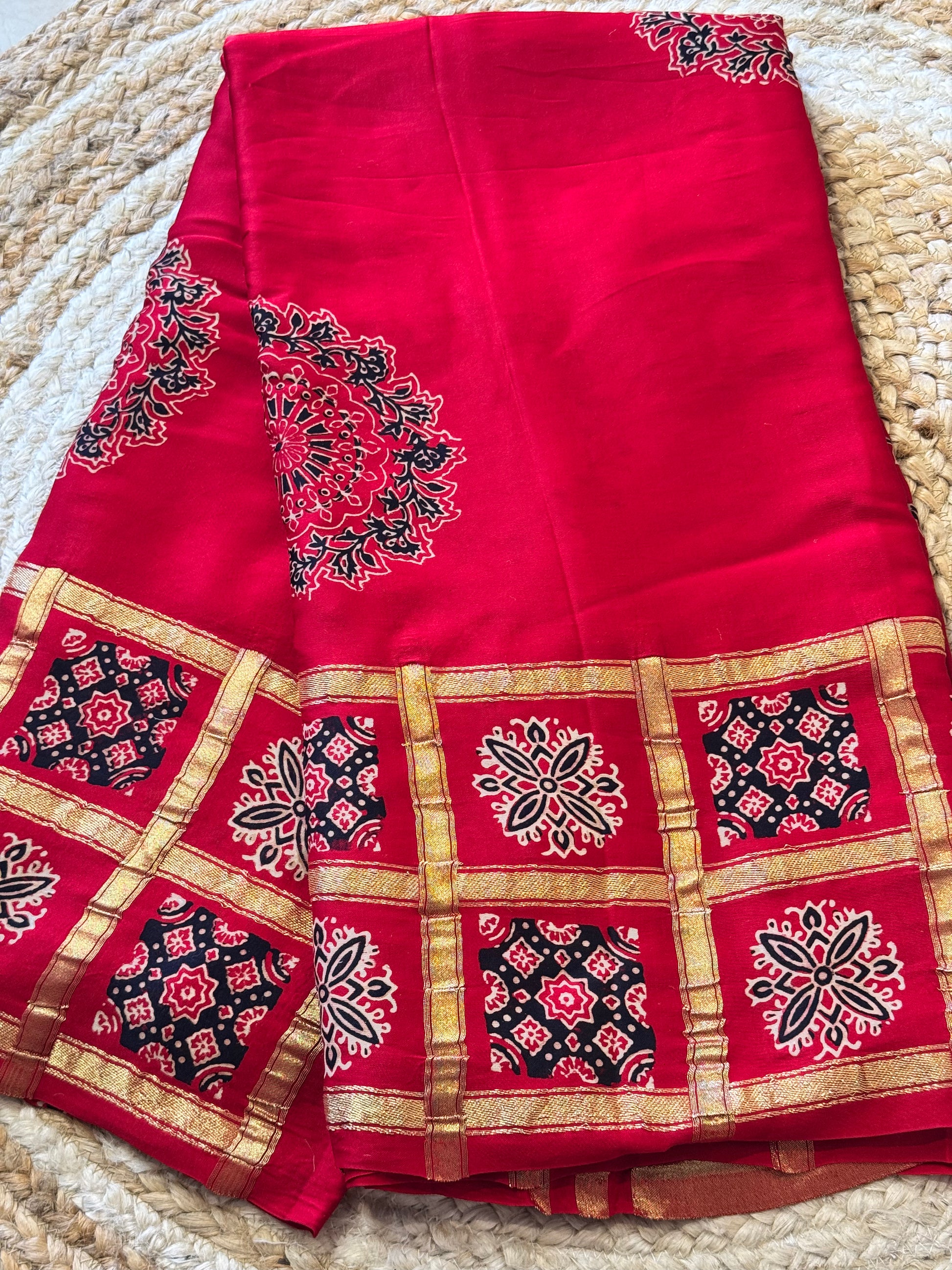 Pure Modal Silk Ajrak Checks Saree