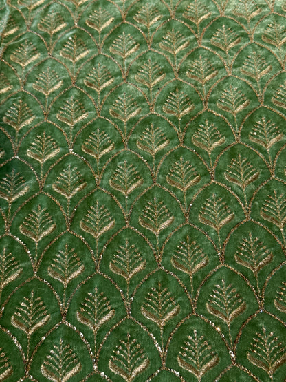 Pista Green Velvet Blouse Material
