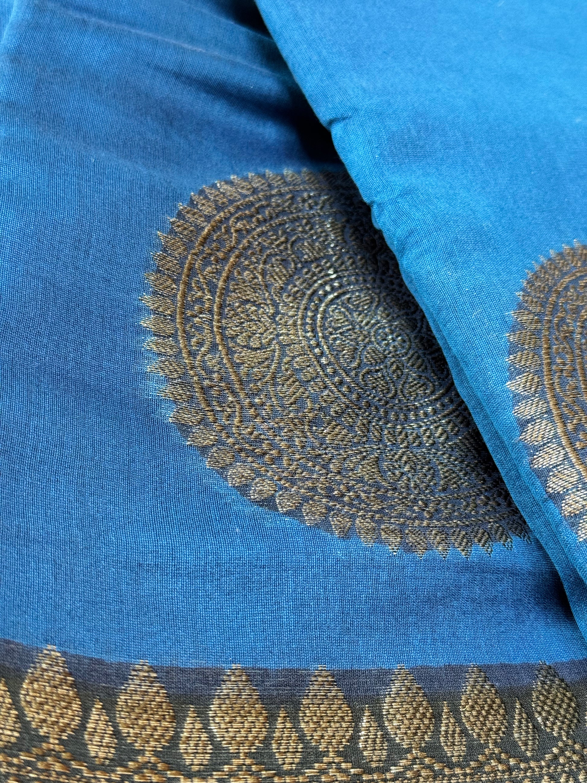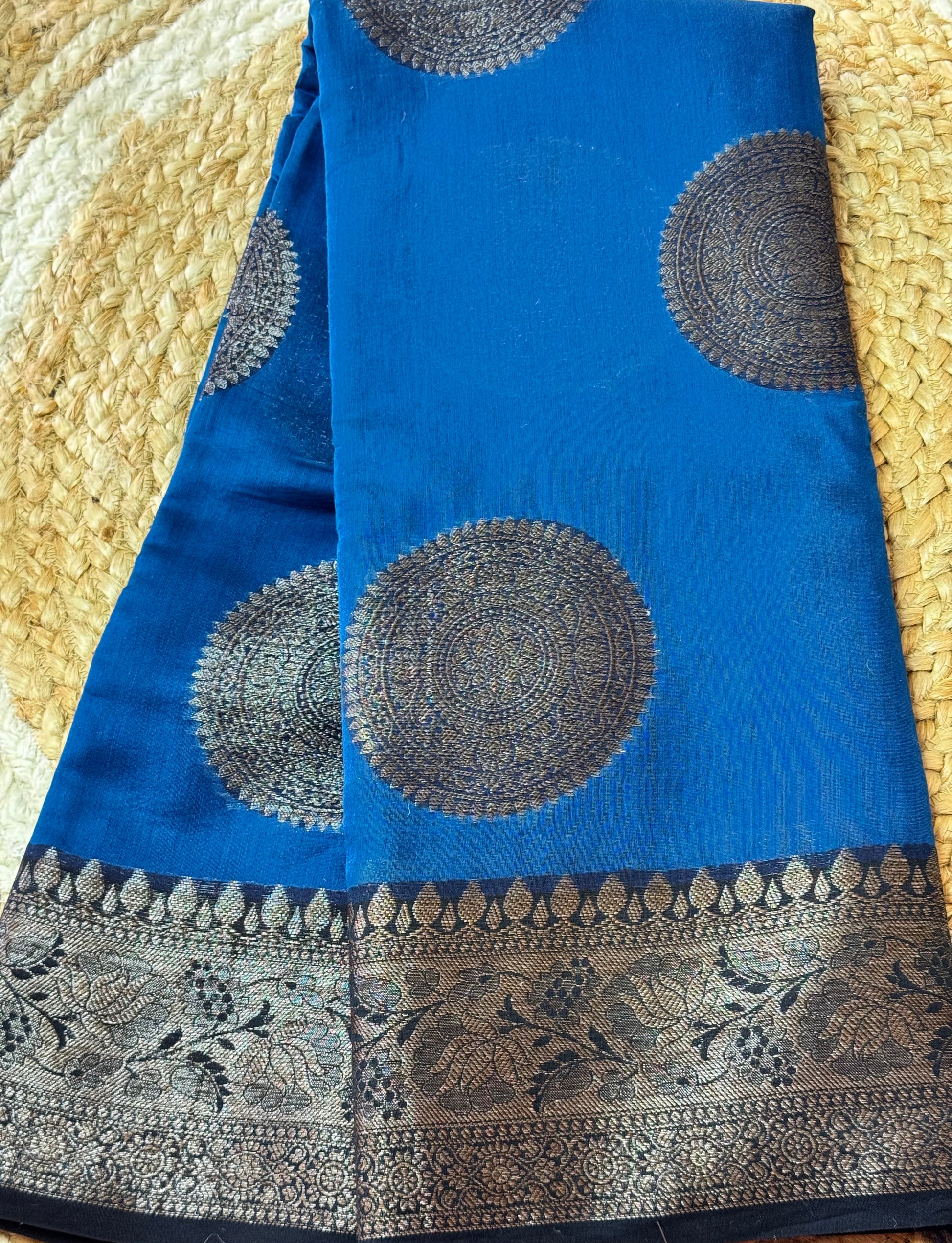 This saree blends the softness of cotton with the luxurious sheen of silk, offering unmatched comfort without compromising on elegance. Woven from pure Chinya silk, it drapes beautifully and feels feather-light, making it a perfect choice for both festive occasions and graceful everyday wear.