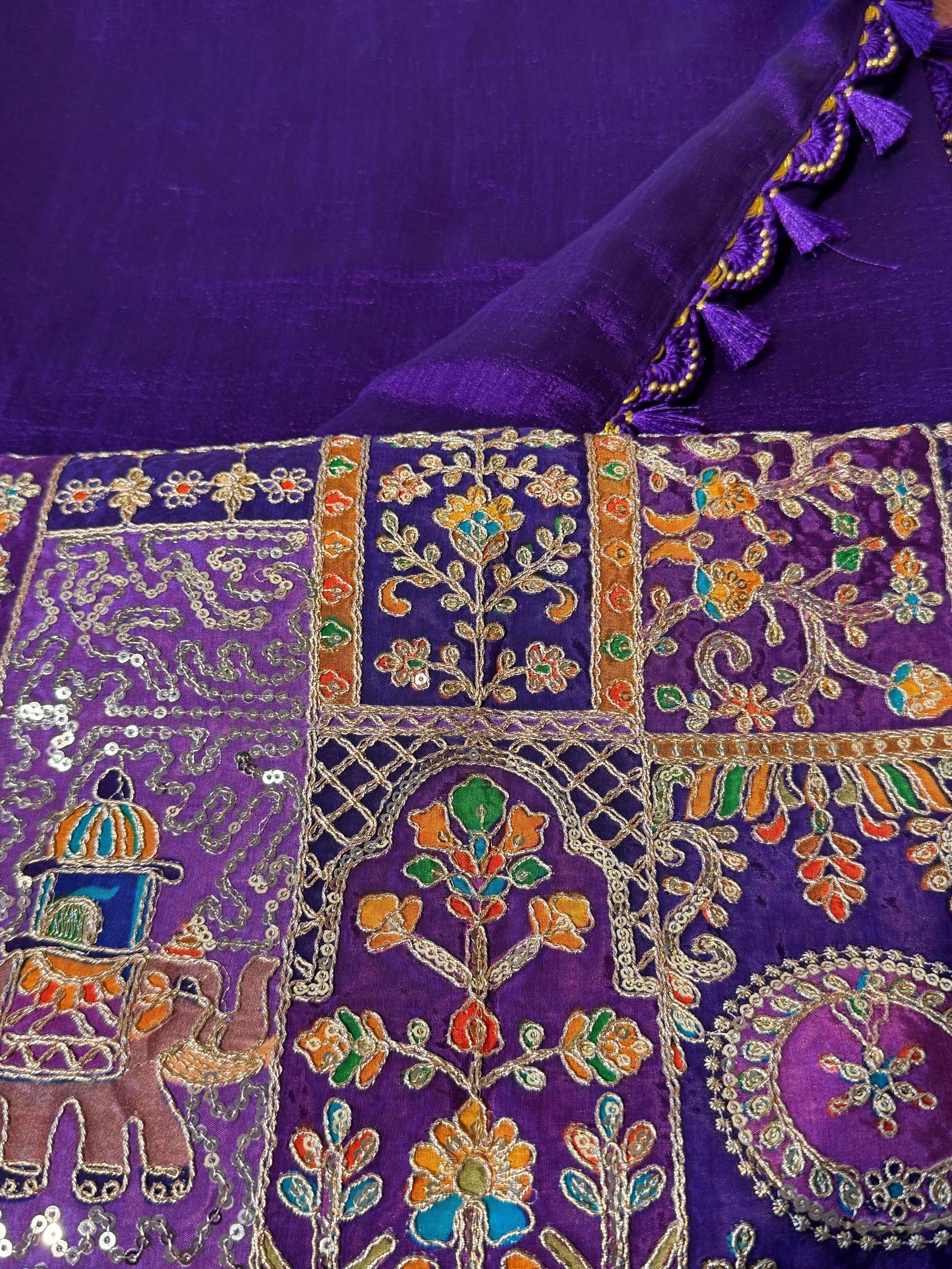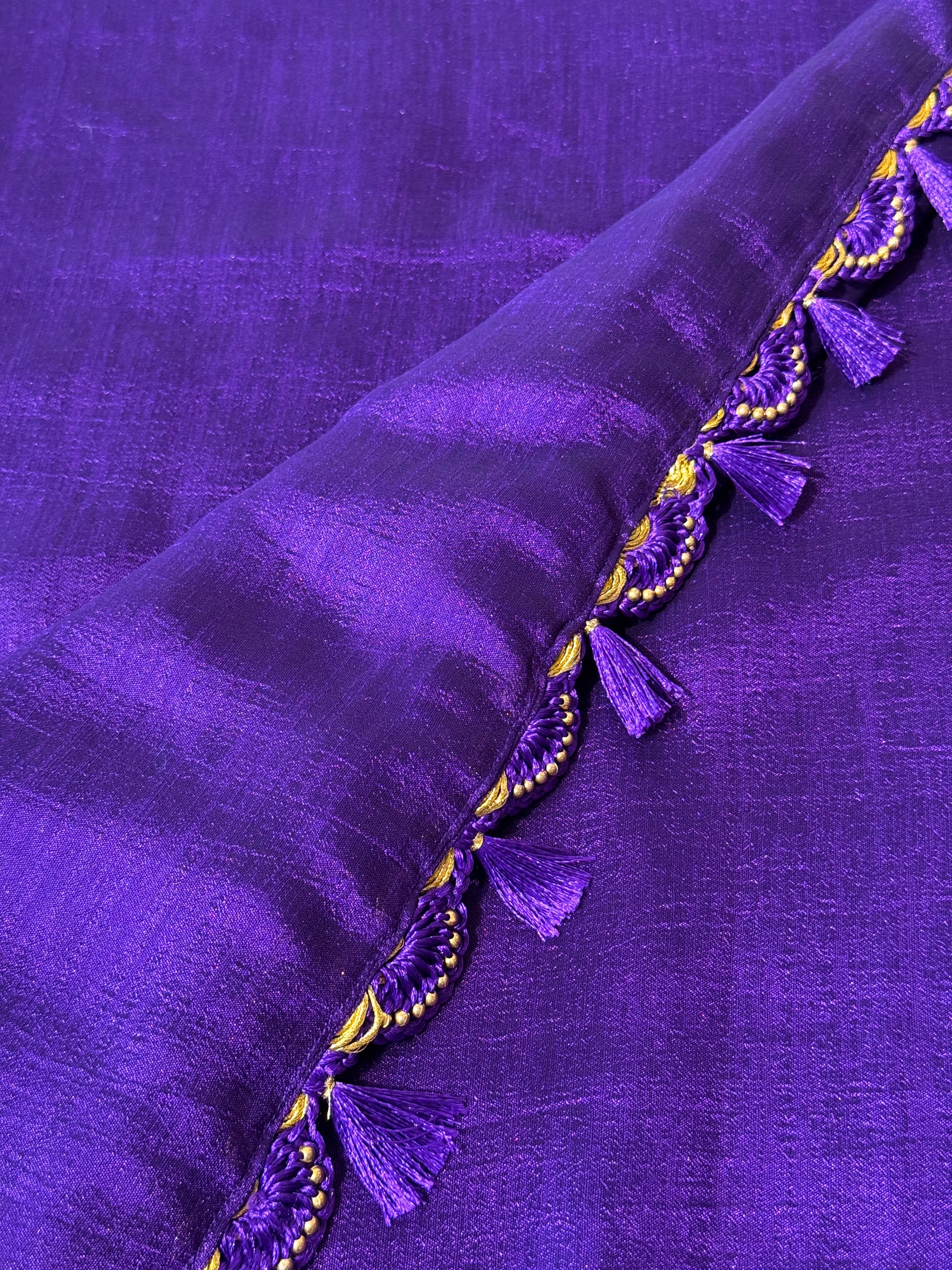 Purple Ambari Special Blouse Material + Kashmiri Silk Plain Saree (Purple tassles)