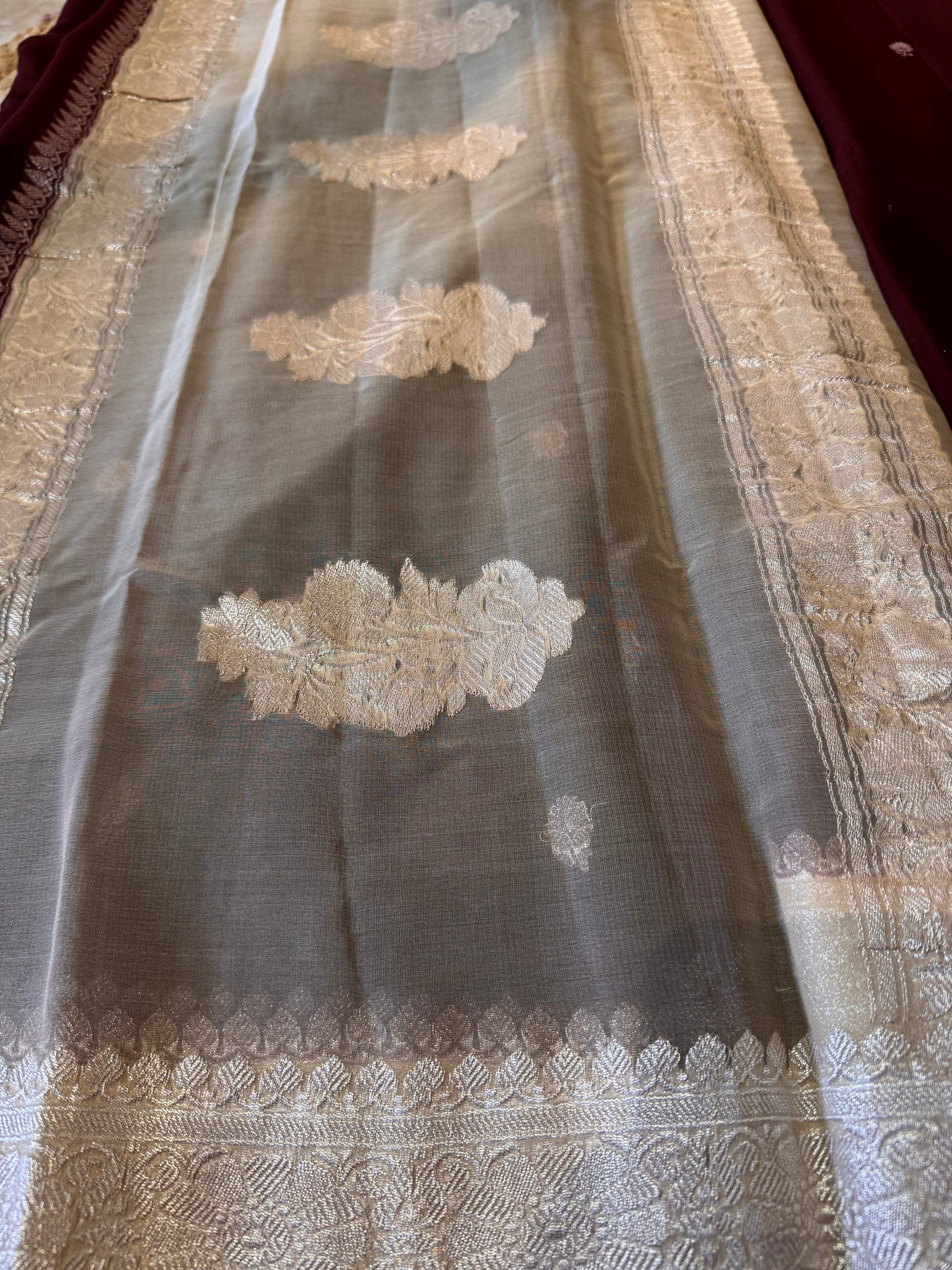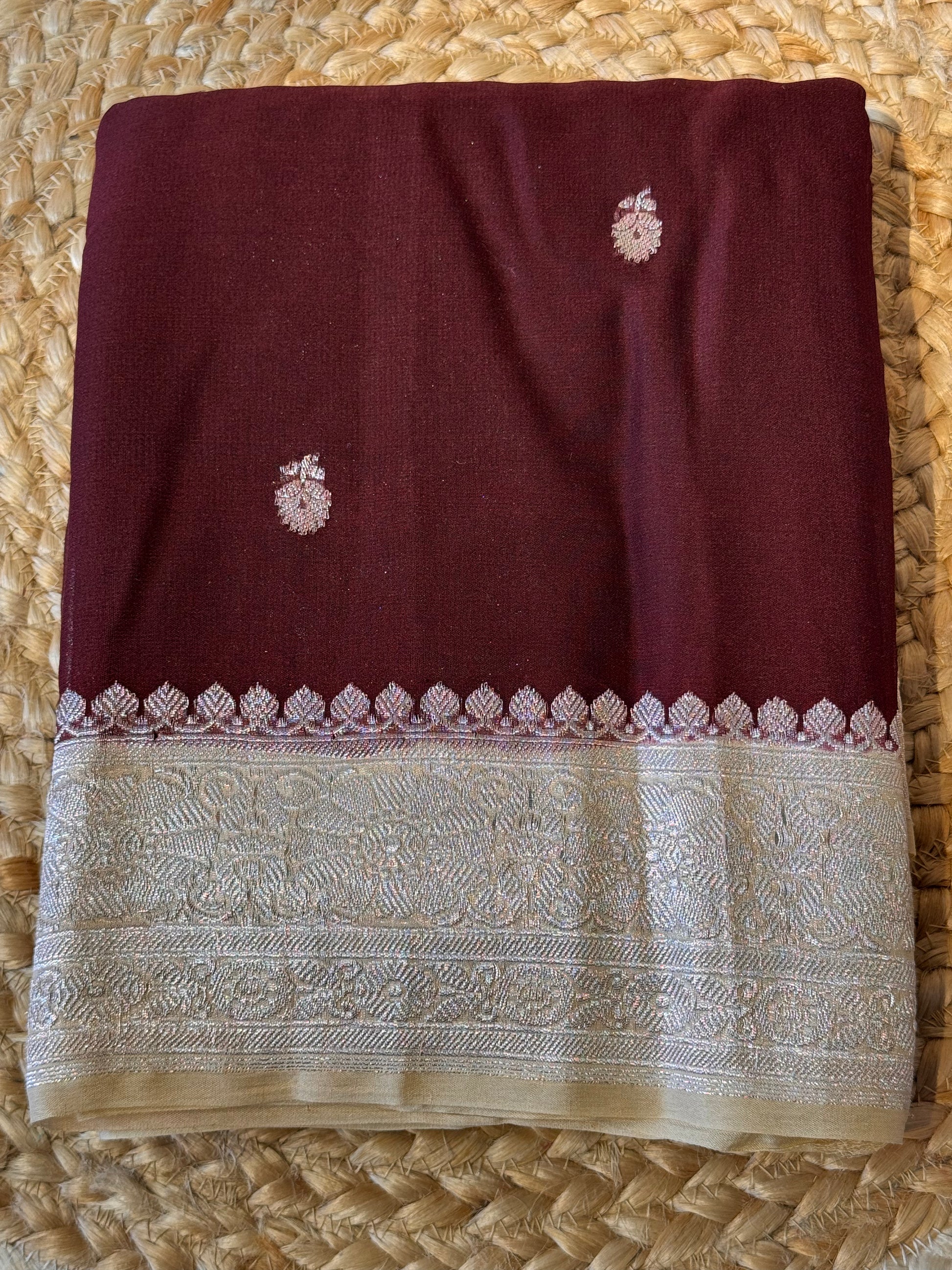 Brown with Cream Khadi Banaras Pure Chiffon Saree