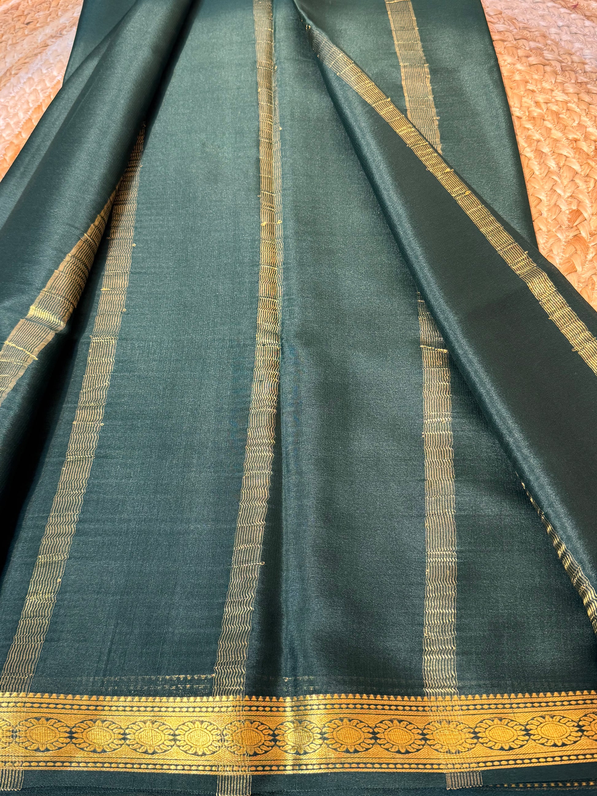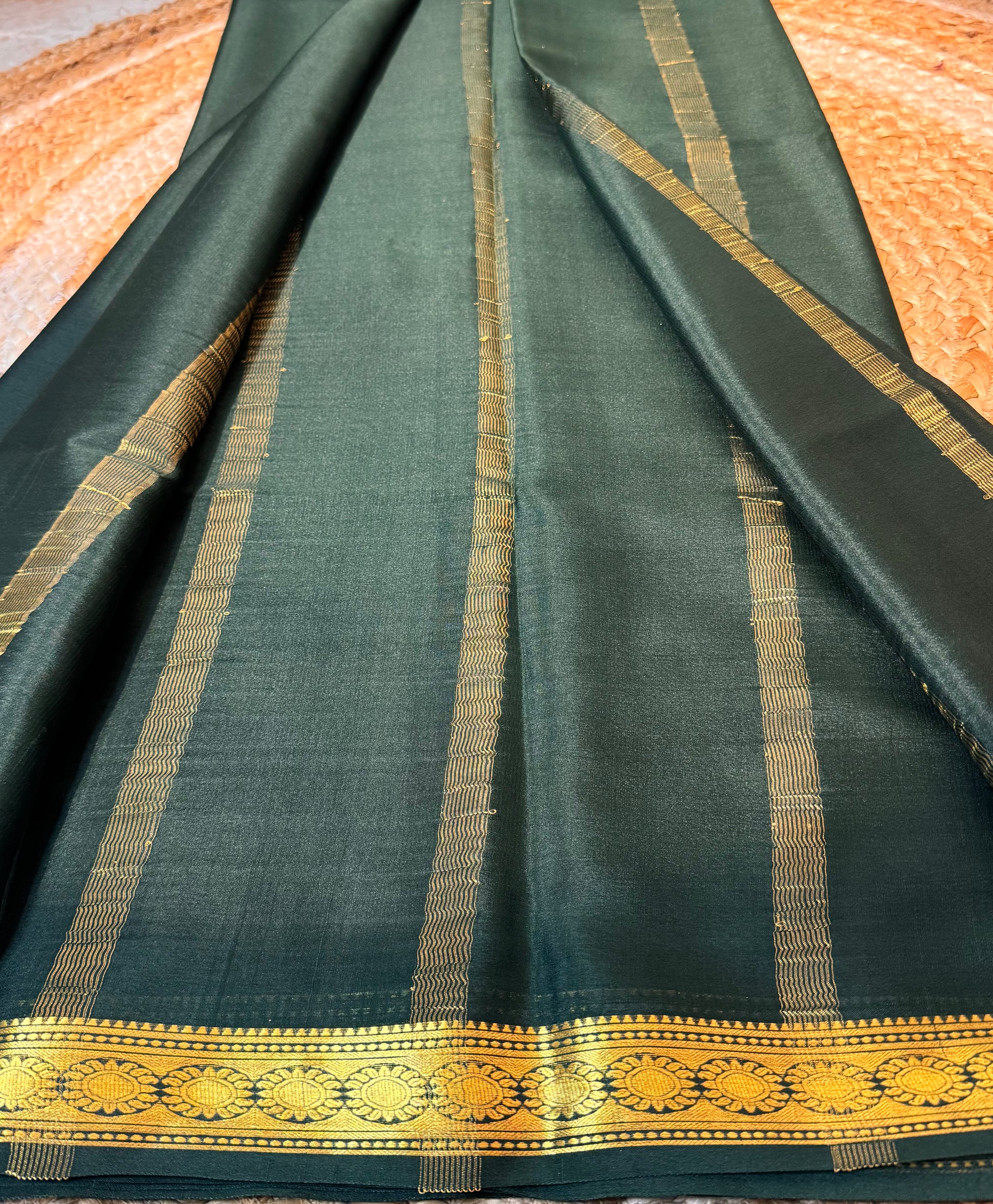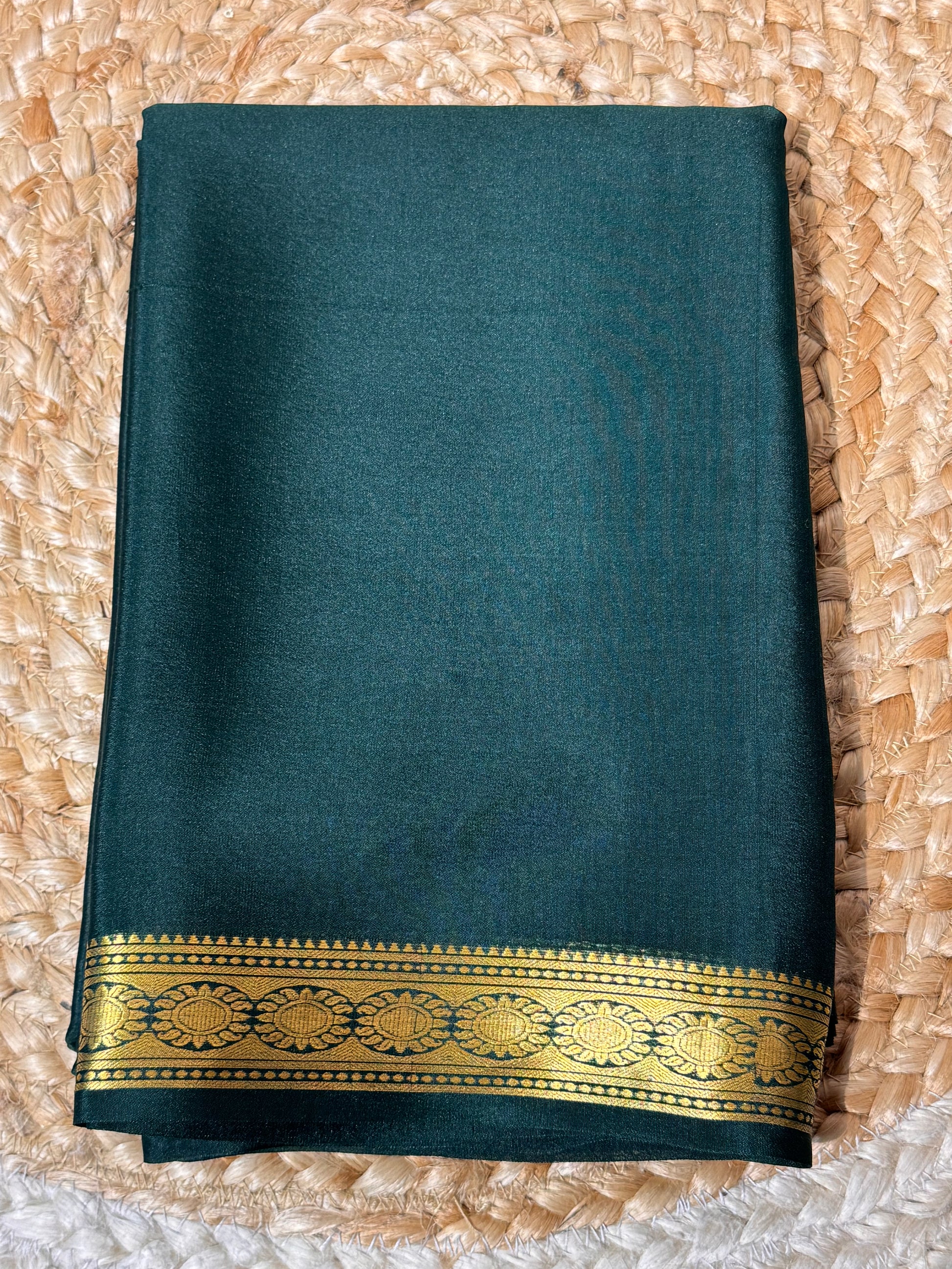 Crafted from pure crepe fabric, these sarees feature elegant golden zari weaving, adding a touch of timeless charm. Each saree comes with a rich pallu and a matching blouse piece, making it perfect for festive and special occasions.