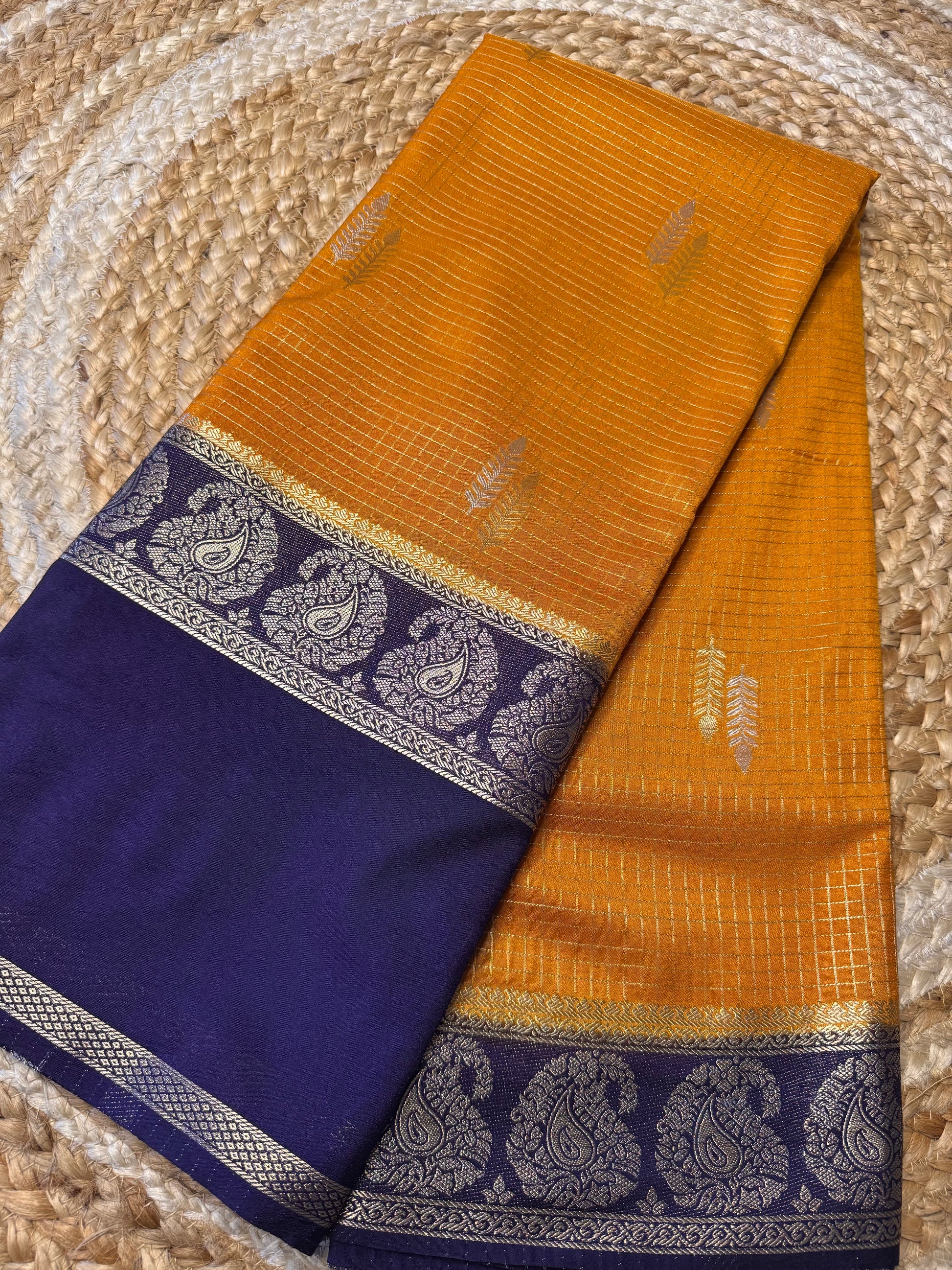 Beautiful colour combinations with an elegant golden zari border, and a classic Rich pallu. ✨🌼