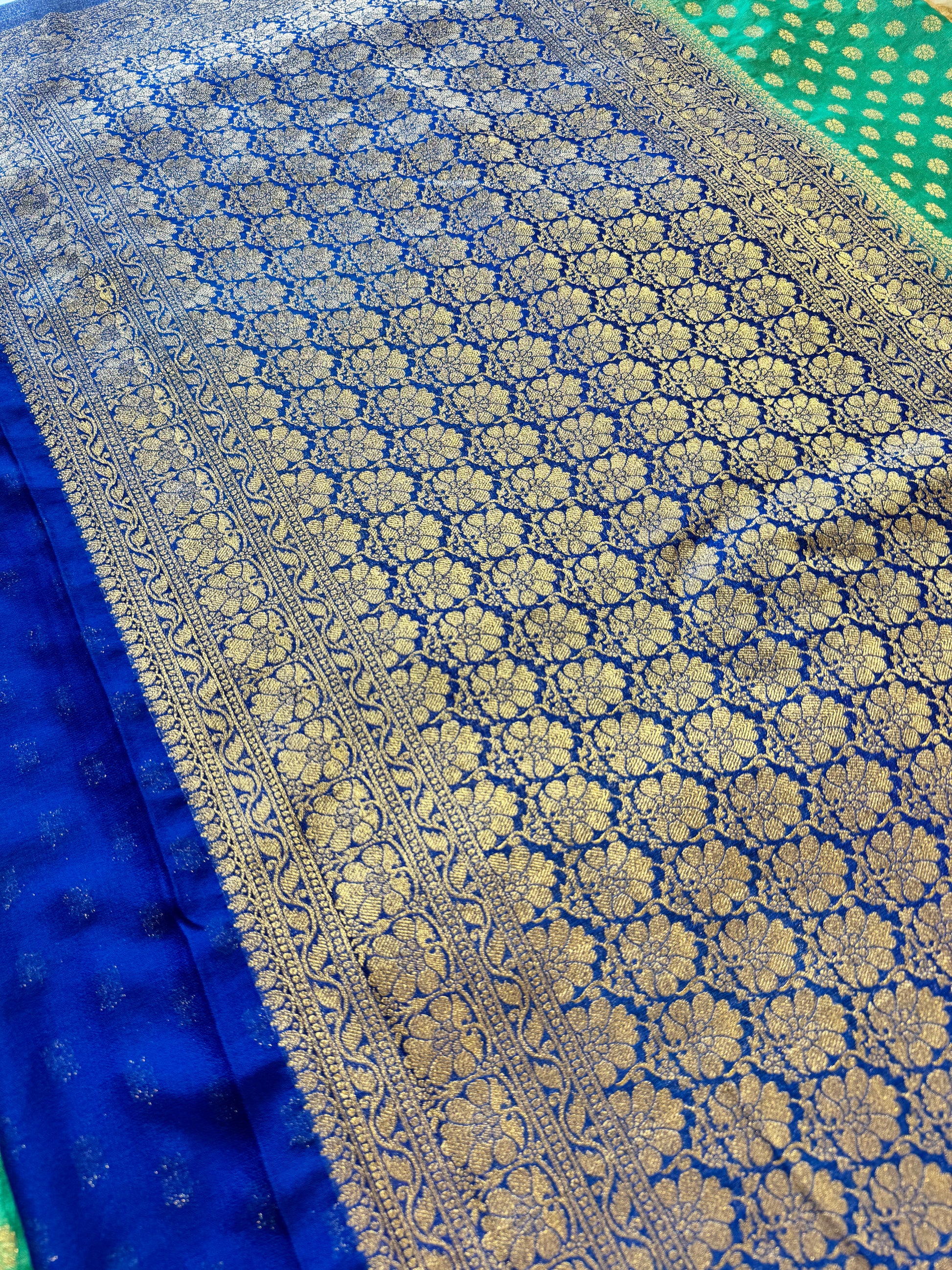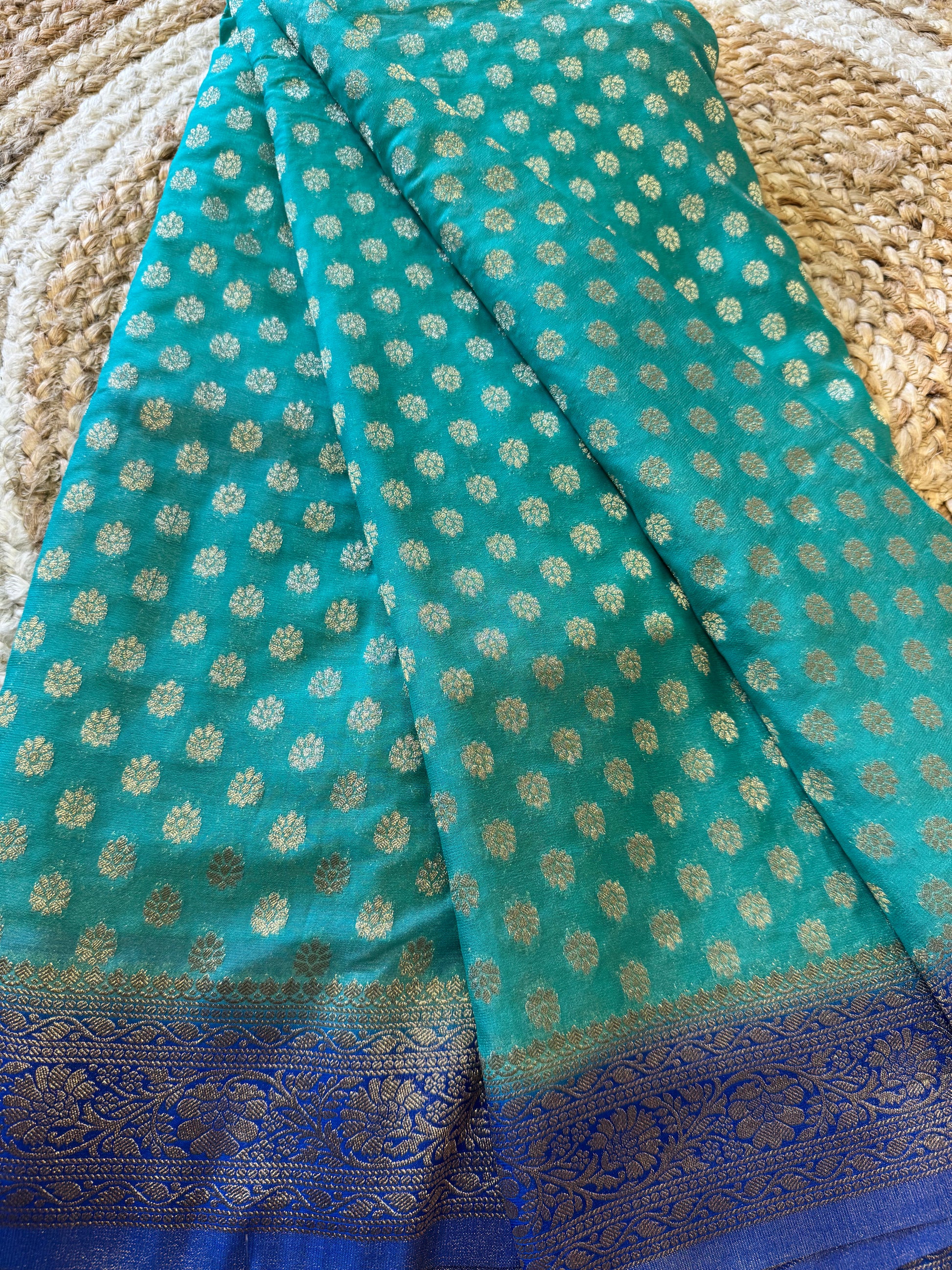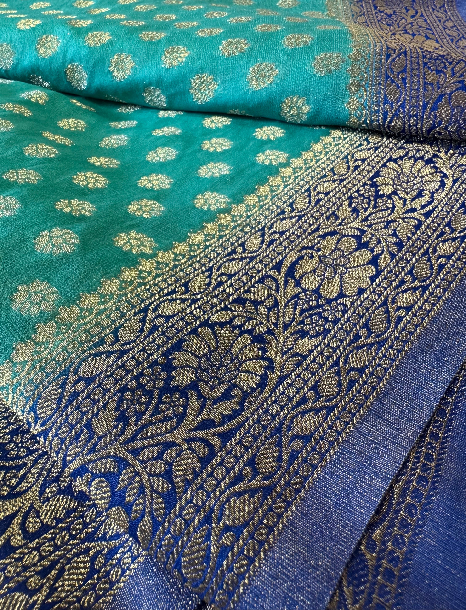 Sea Green with Blue Banarasi Semi Khadi Butti Georgette Saree