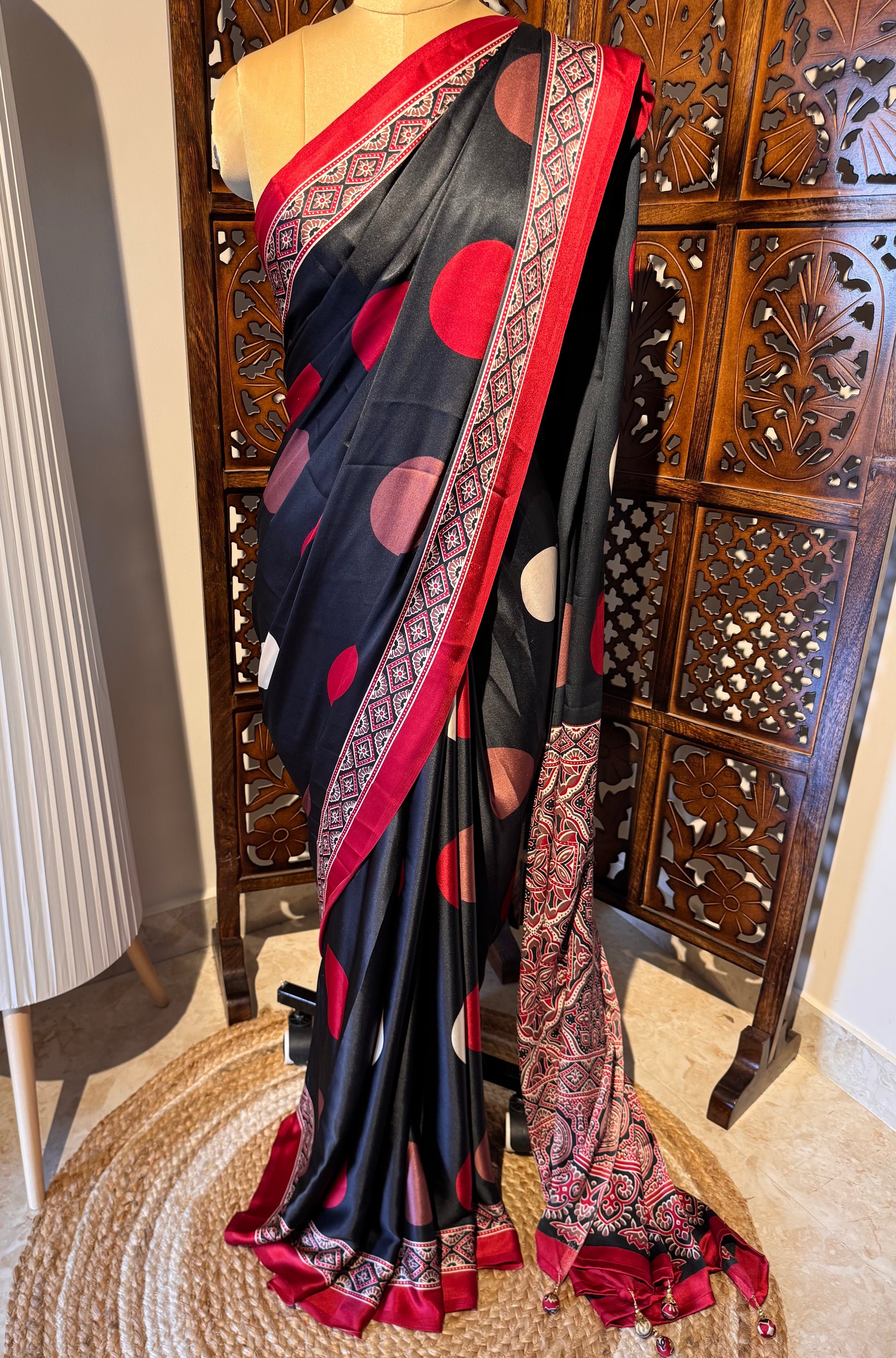 Semi Modal Silk is a superior quality saree made from a blend of semi modal and silk materials. This unique combination creates a fabric that is not only soft to the touch, but also has a distinct texture that sets it apart from other sarees. Experience the luxurious comfort and one-of-a-kind look of Semi Modal Silk.