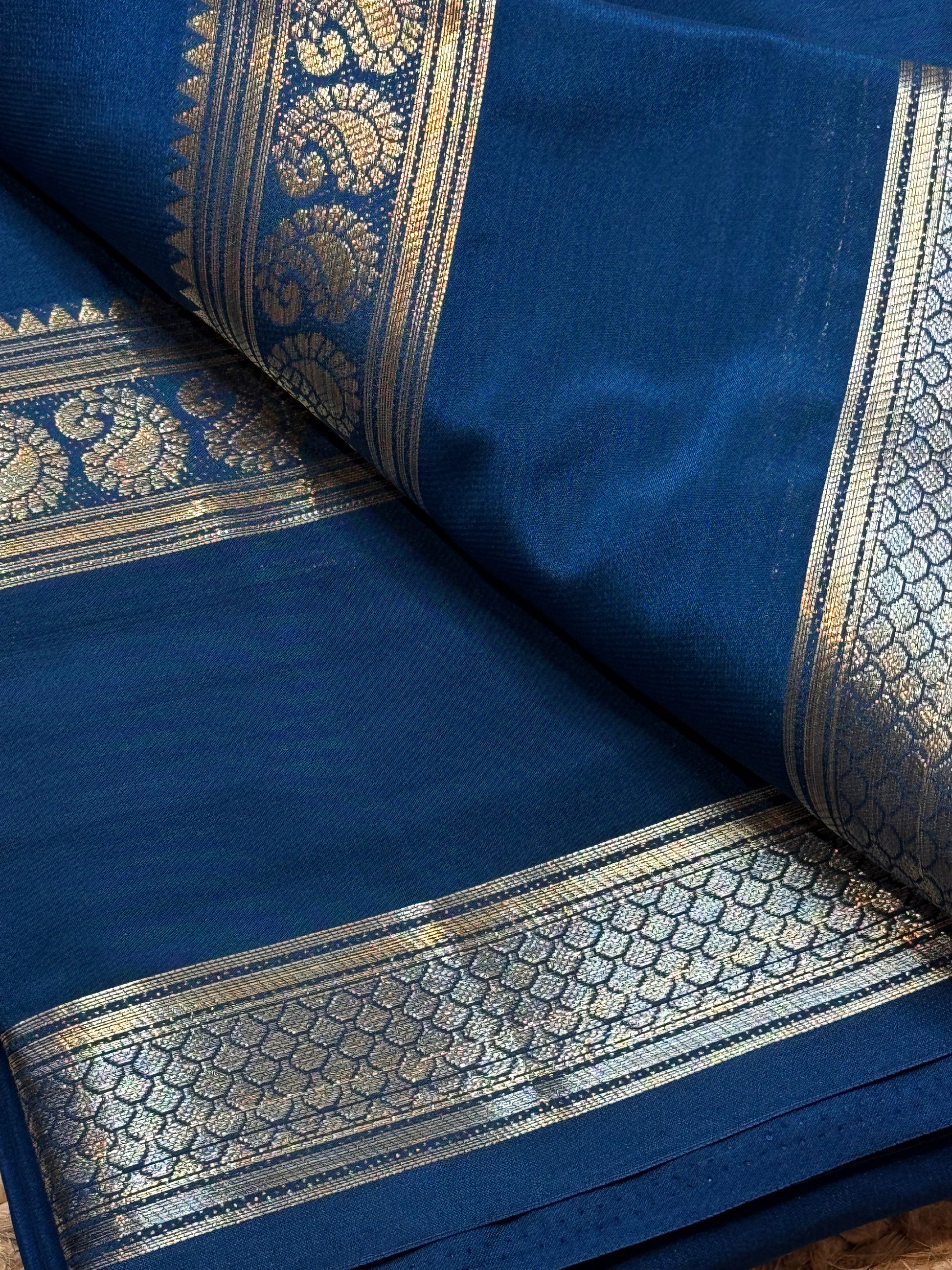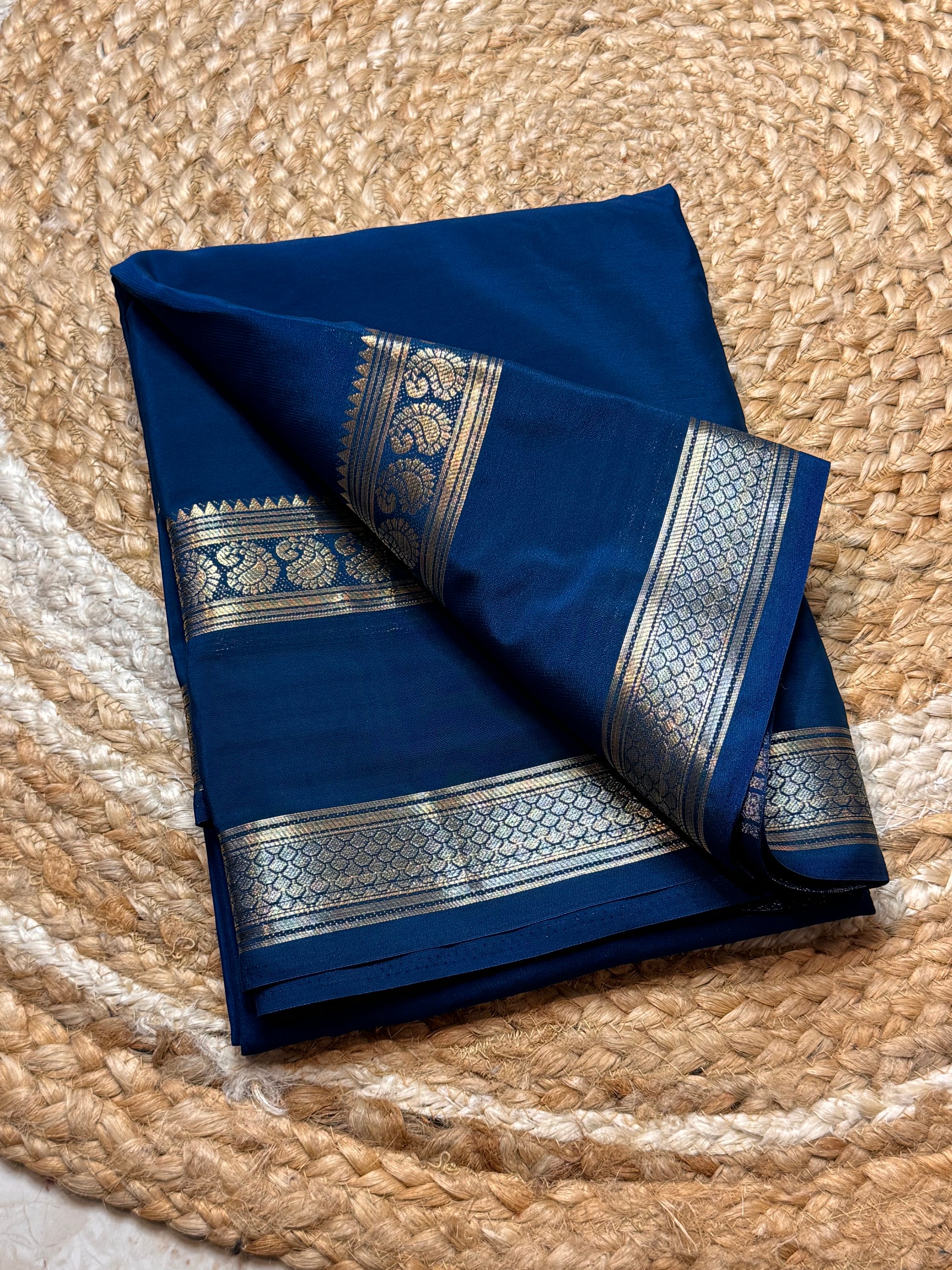 Semi Mysore Crepe Silk (Sea Blue Self colour - Bentex Border)