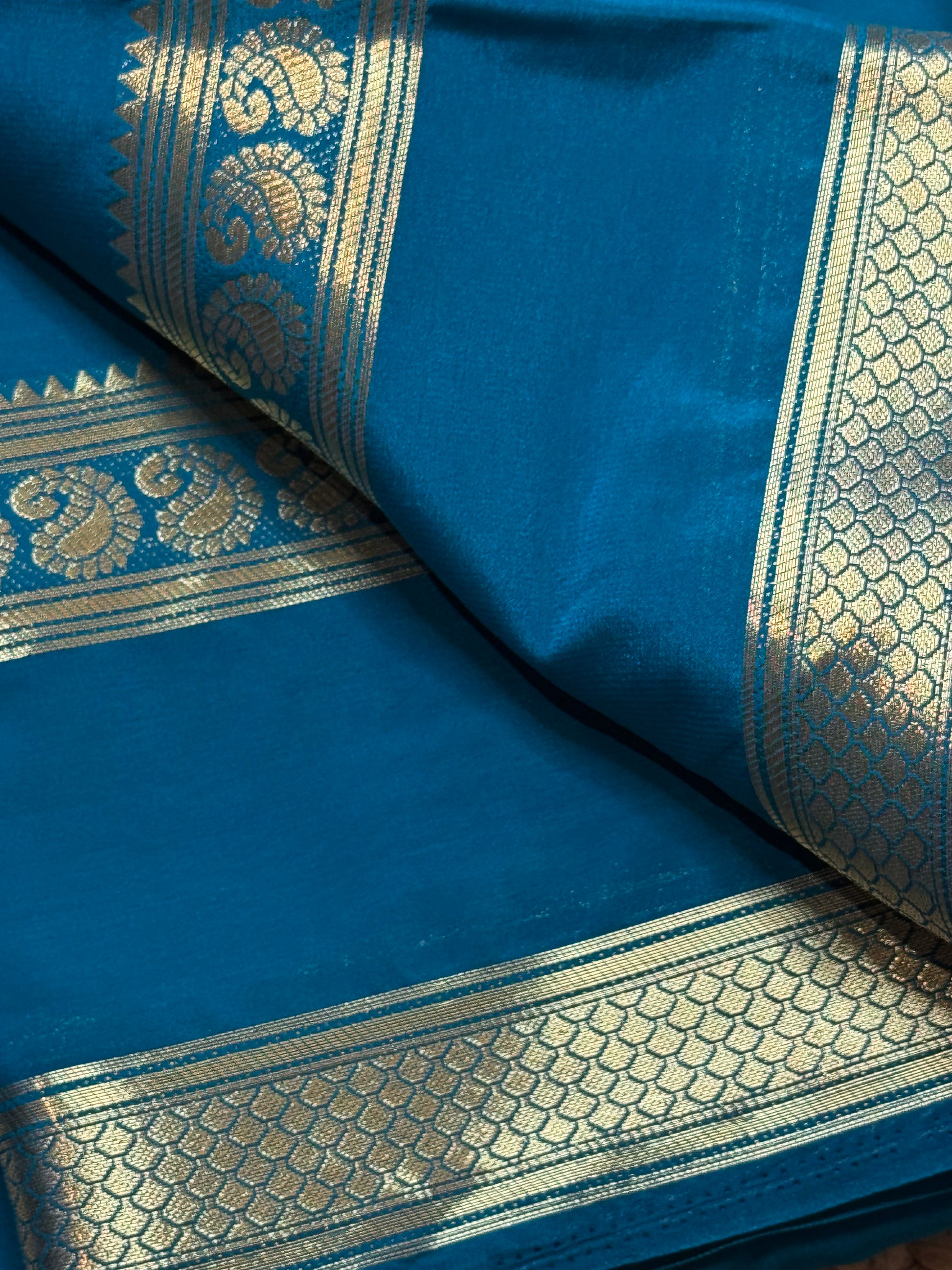 Semi Mysore Crepe Silk (Sea Green Self colour - Bentex Border)