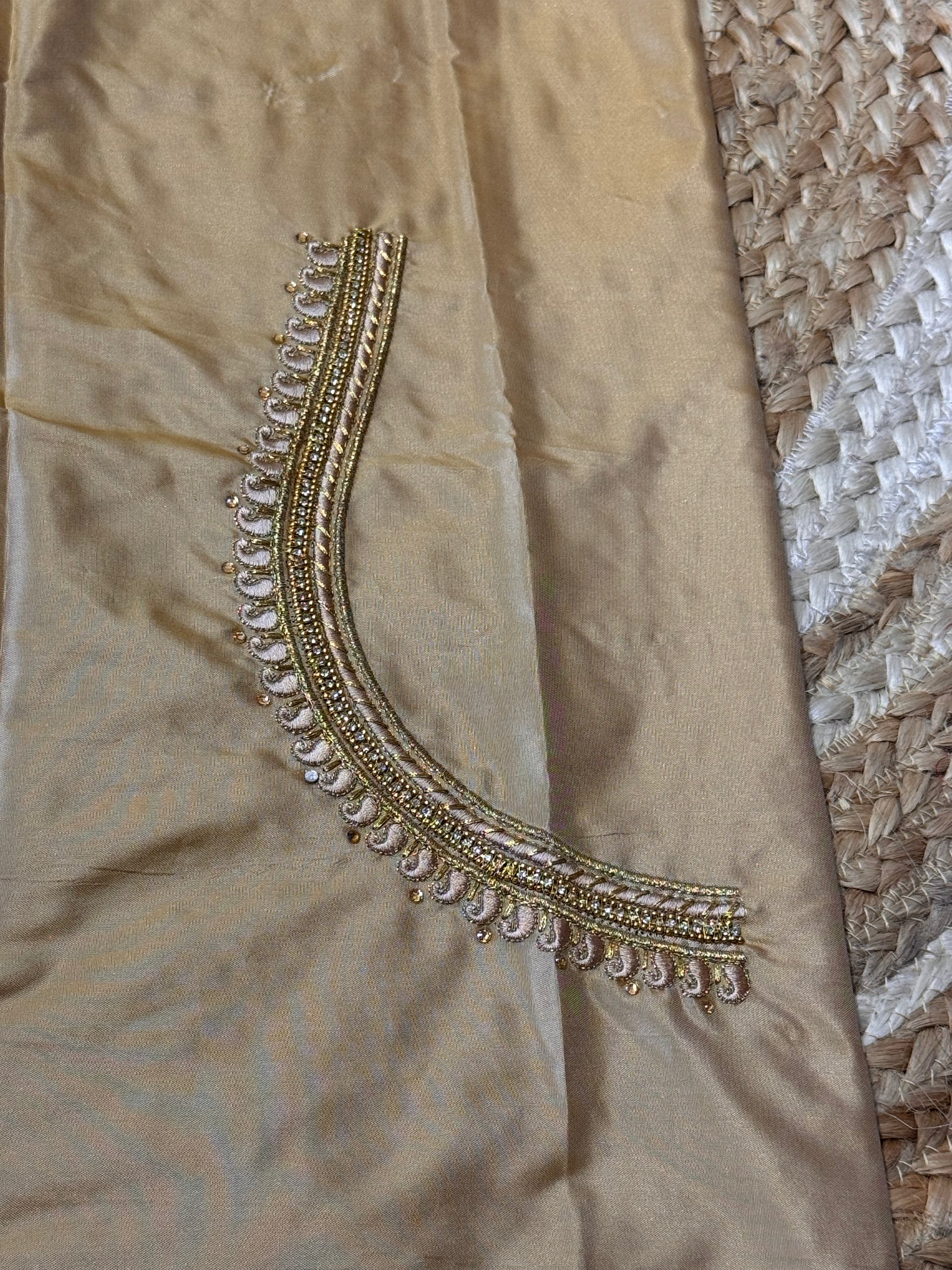Gold Silk Blouse Material with Embroidery work