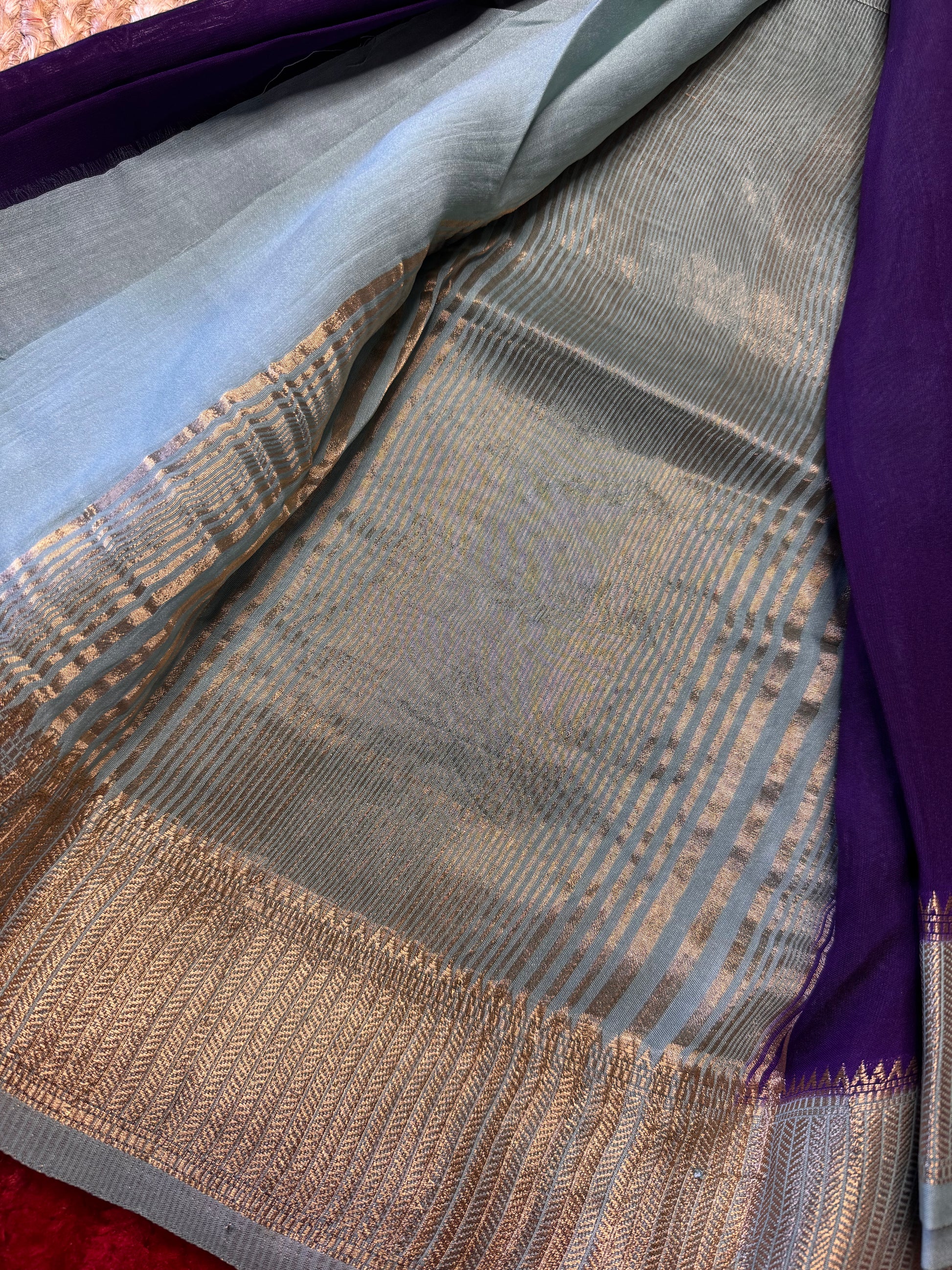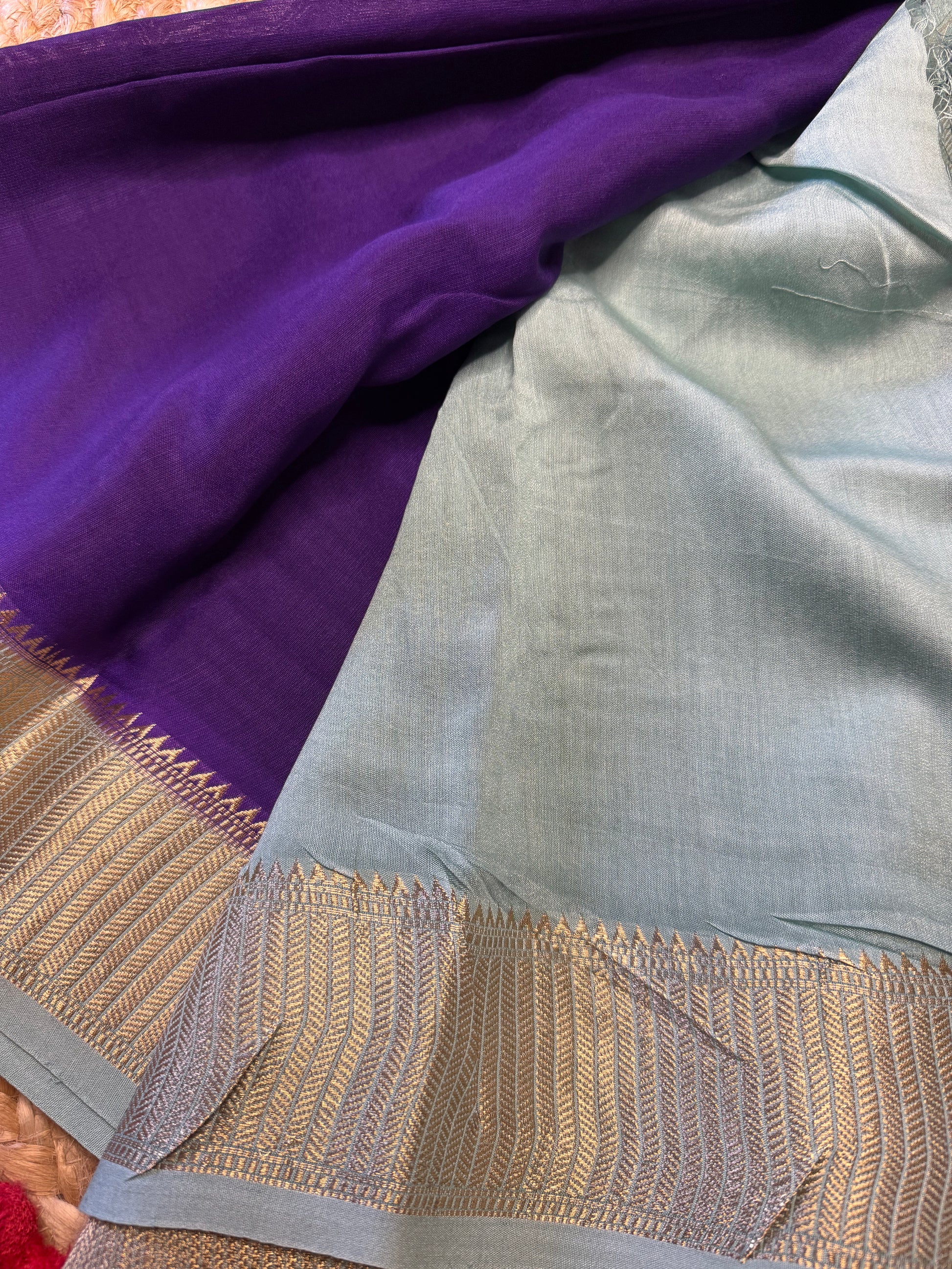 Beautiful colour combinations with an elegant golden zari border, and a classic Rich pallu. ✨🌼