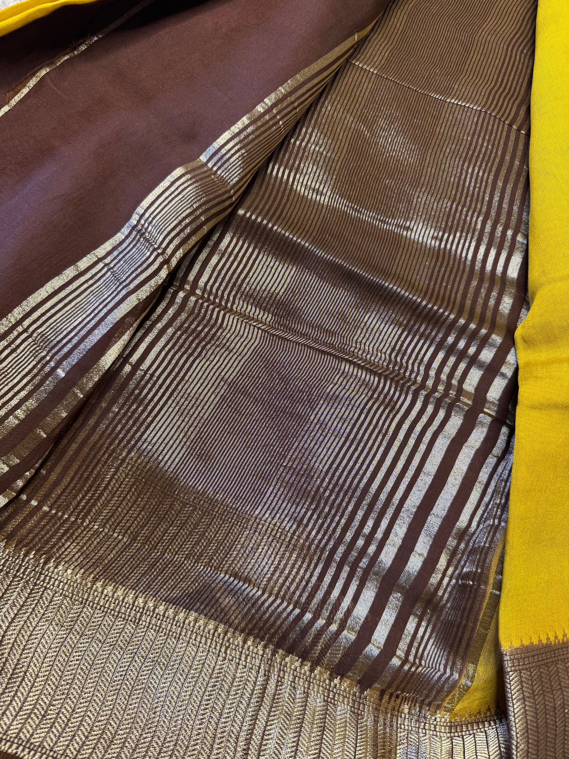 Beautiful colour combinations with an elegant golden zari border, and a classic Rich pallu. ✨🌼
